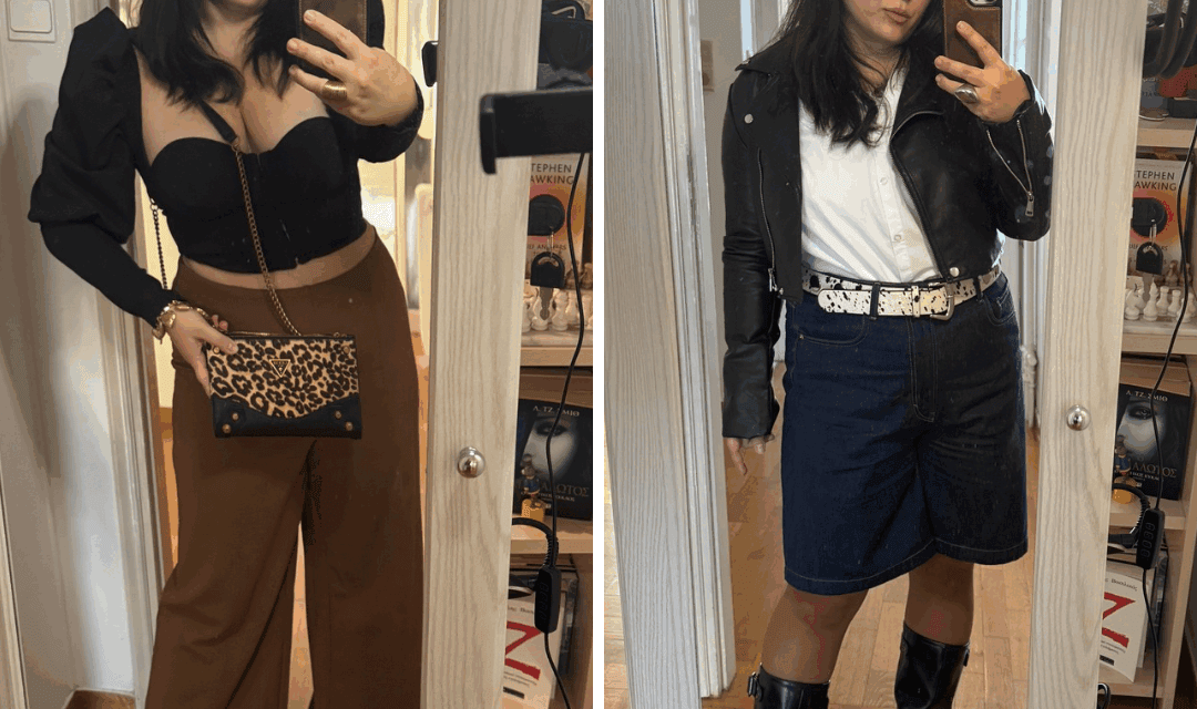 Συνδυάζεται με corset top σε μαύρο, λεοπάρ τσάντα και pointed γόβες — ένα combo που αποπνέει αυτοπεποίθηση και ανεπιτήδευτο sex appeal.