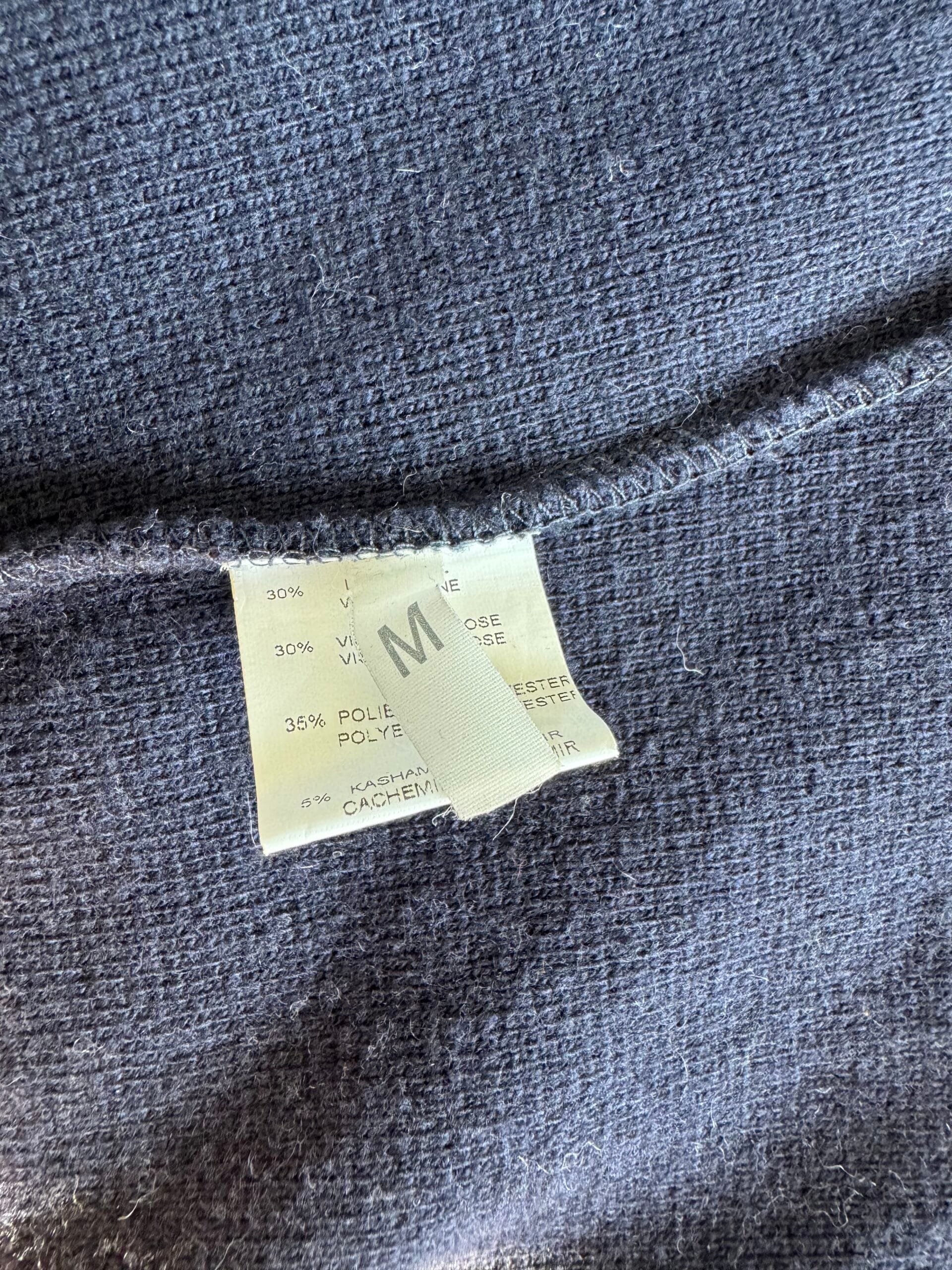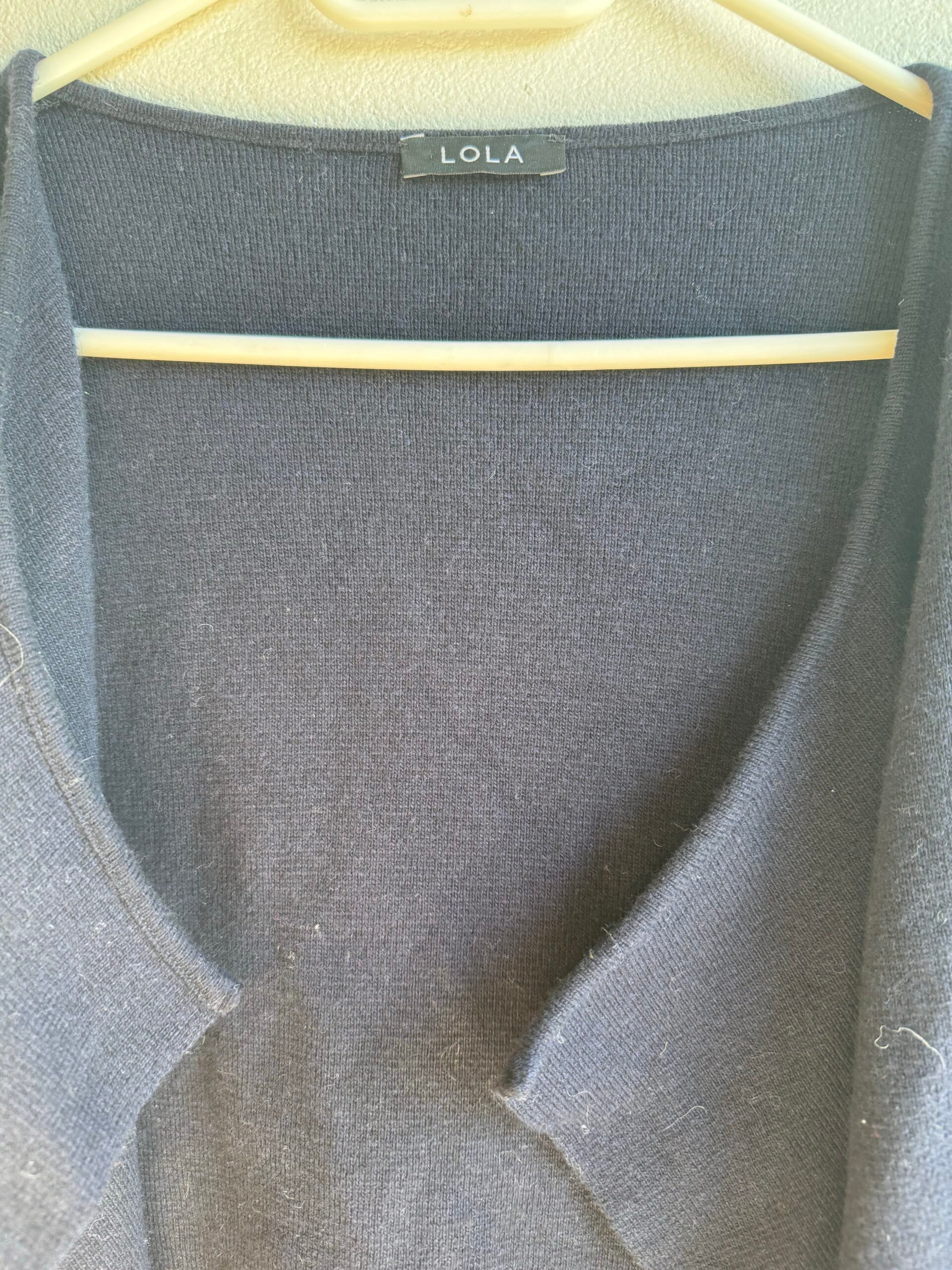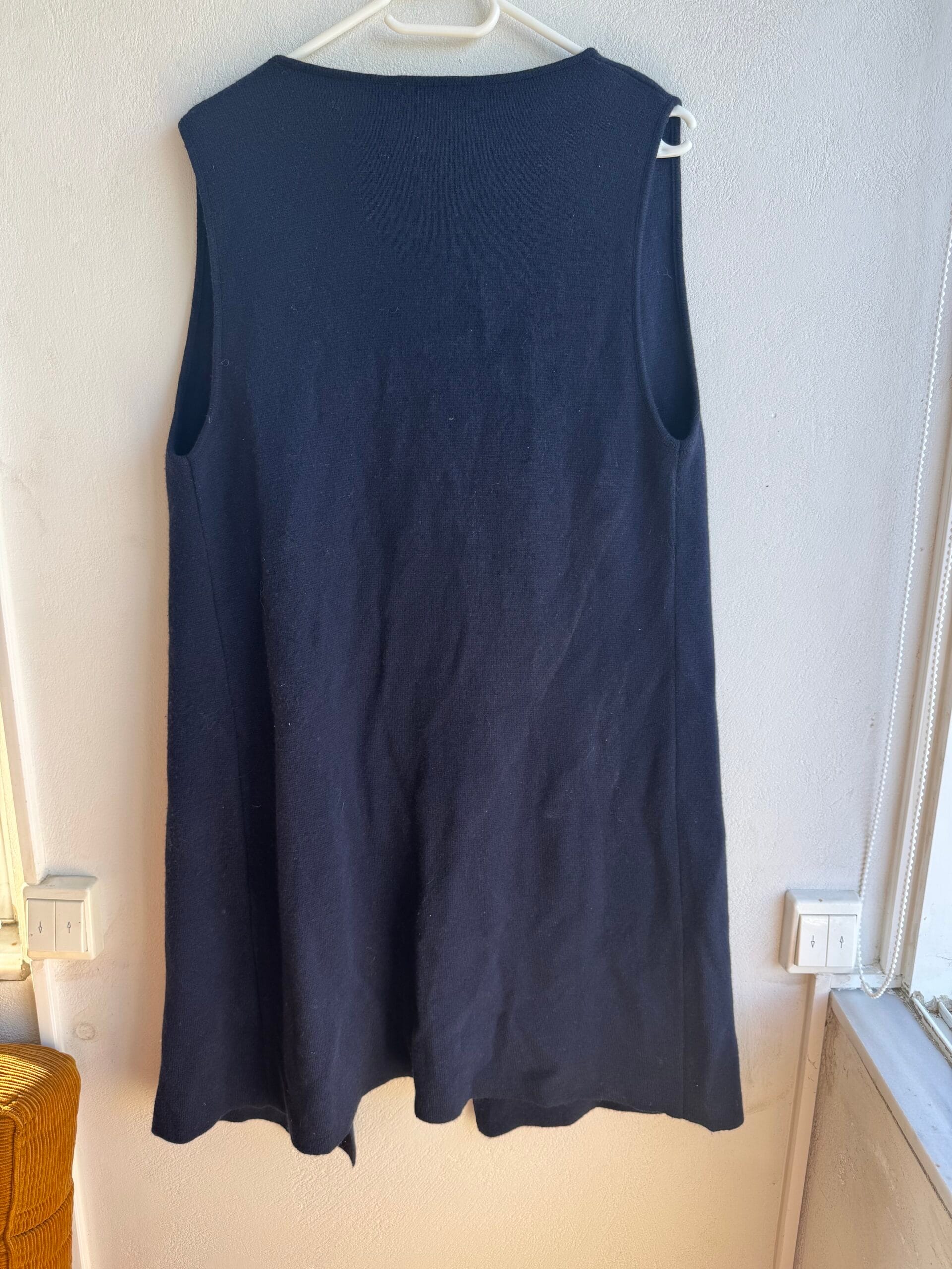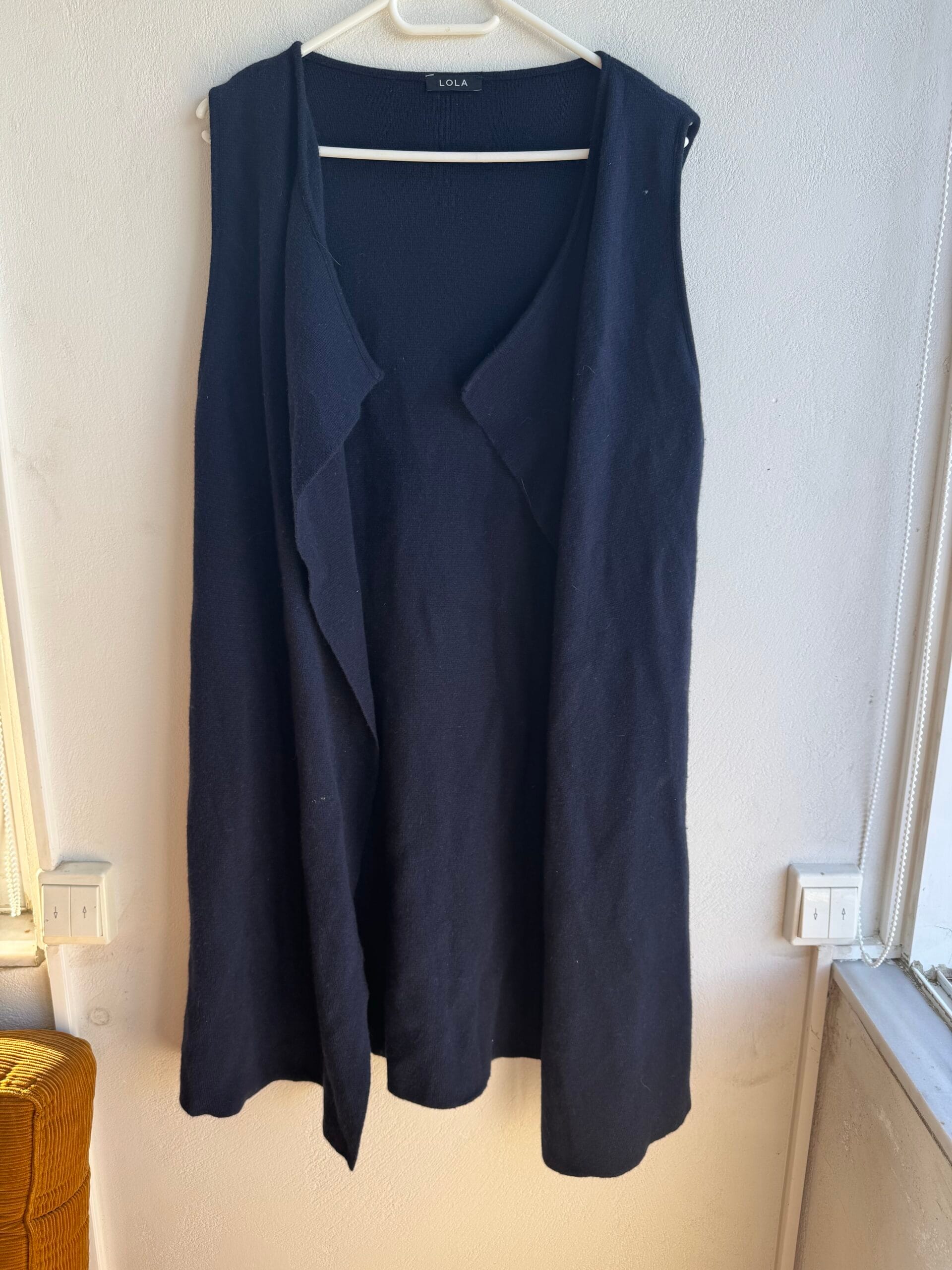 Ένα διαχρονικό layering κομμάτι που δίνει αμέσως κίνηση και χαρακτήρα σε κάθε look. Είναι σε σκούρο navy/μαύρο χρώμα, με ανοιχτή γραμμή χωρίς κλείσιμο, ώστε να φοριέται άνετα πάνω από μπλούζες, πουκάμισα ή ακόμα και φορέματα. Το μήκος του προσφέρει επιμήκυνση στη σιλουέτα, ενώ το ελαφρύ κρόσι στο τελείωμα προσθέτει ανεπιτήδευτη κομψότητα.