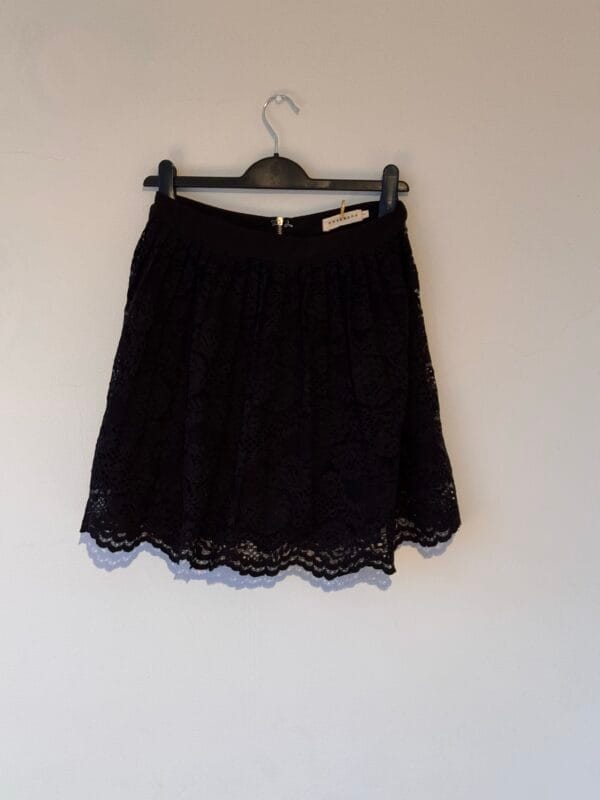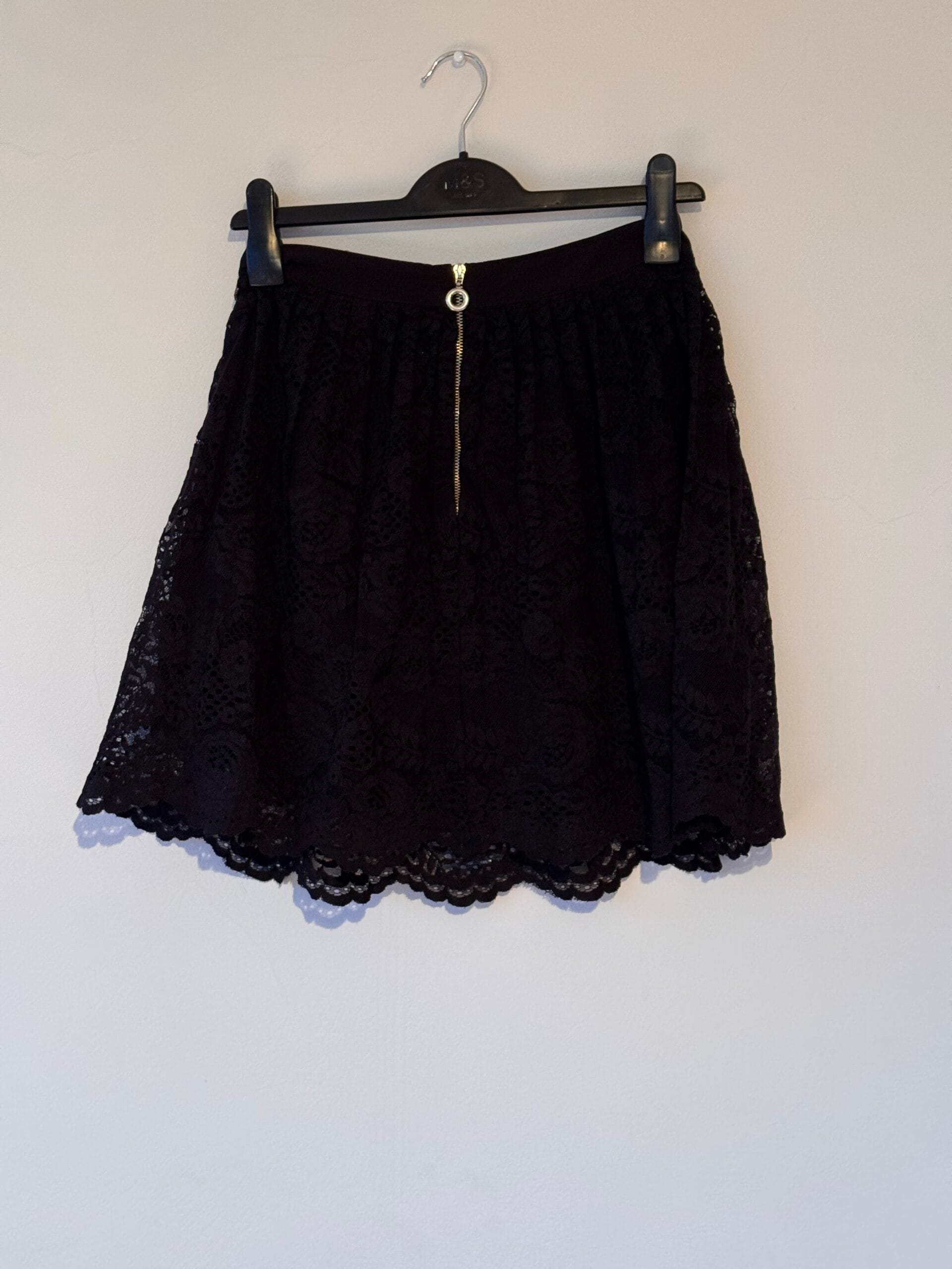 Κομψή μαύρη δαντελένια mini φούστα από την εταιρεία oneonone, σε μέγεθος 1 που αντιστοιχεί σε EU Small.