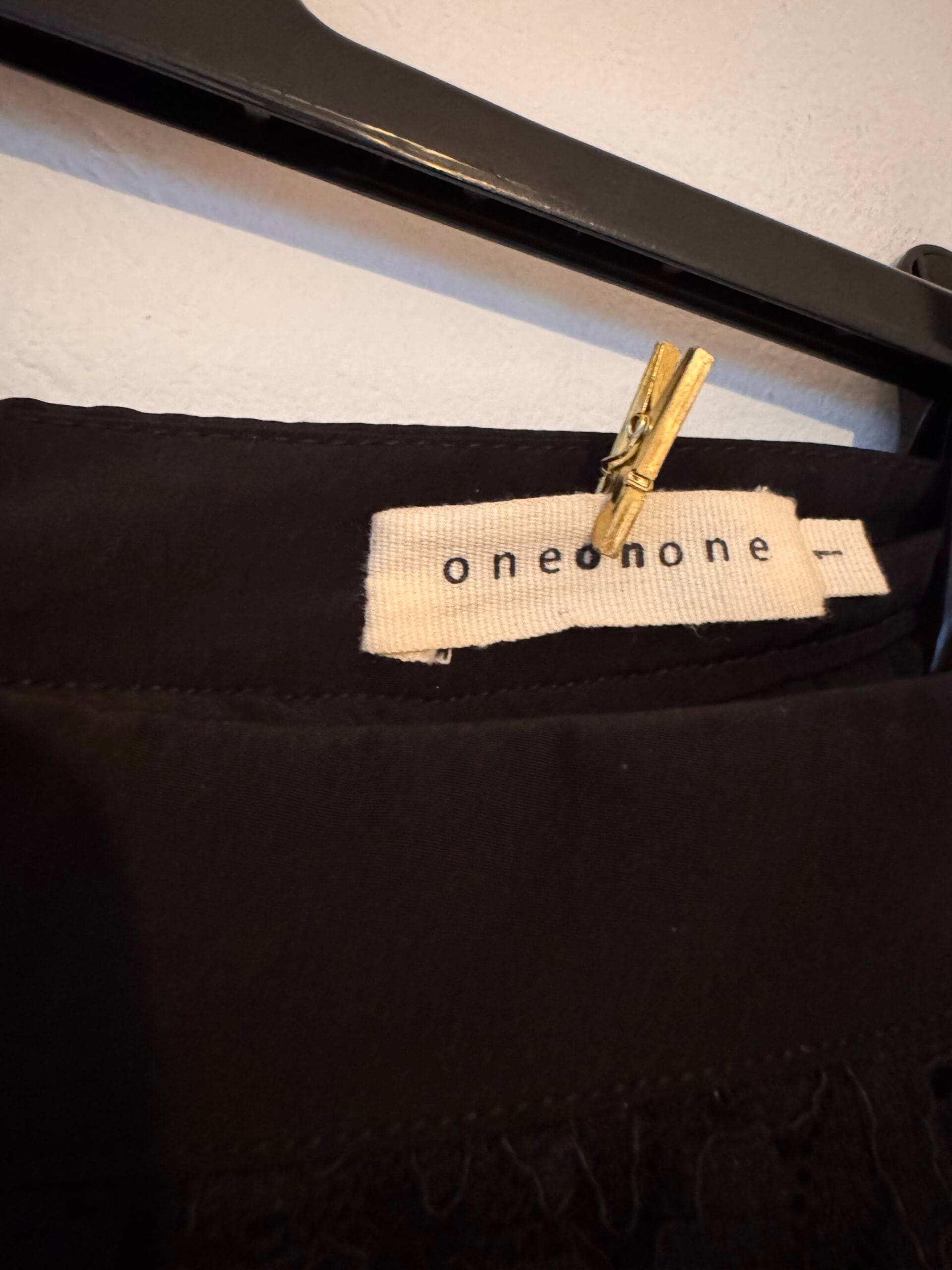 Μαύρη δαντελένια mini φούστα oneonone, μέγεθος 1 (EU Small), ιδανική για καθημερινά chic ή βραδινά looks. Made in EU. Άριστη κατάσταση.