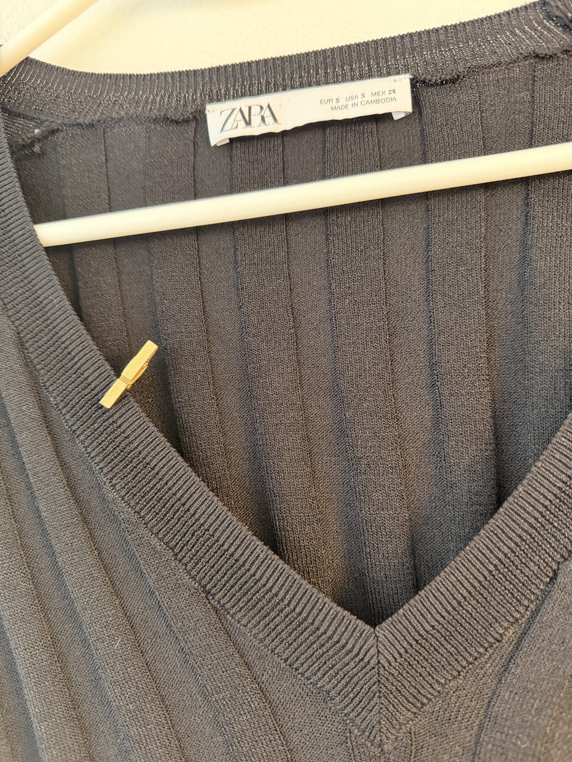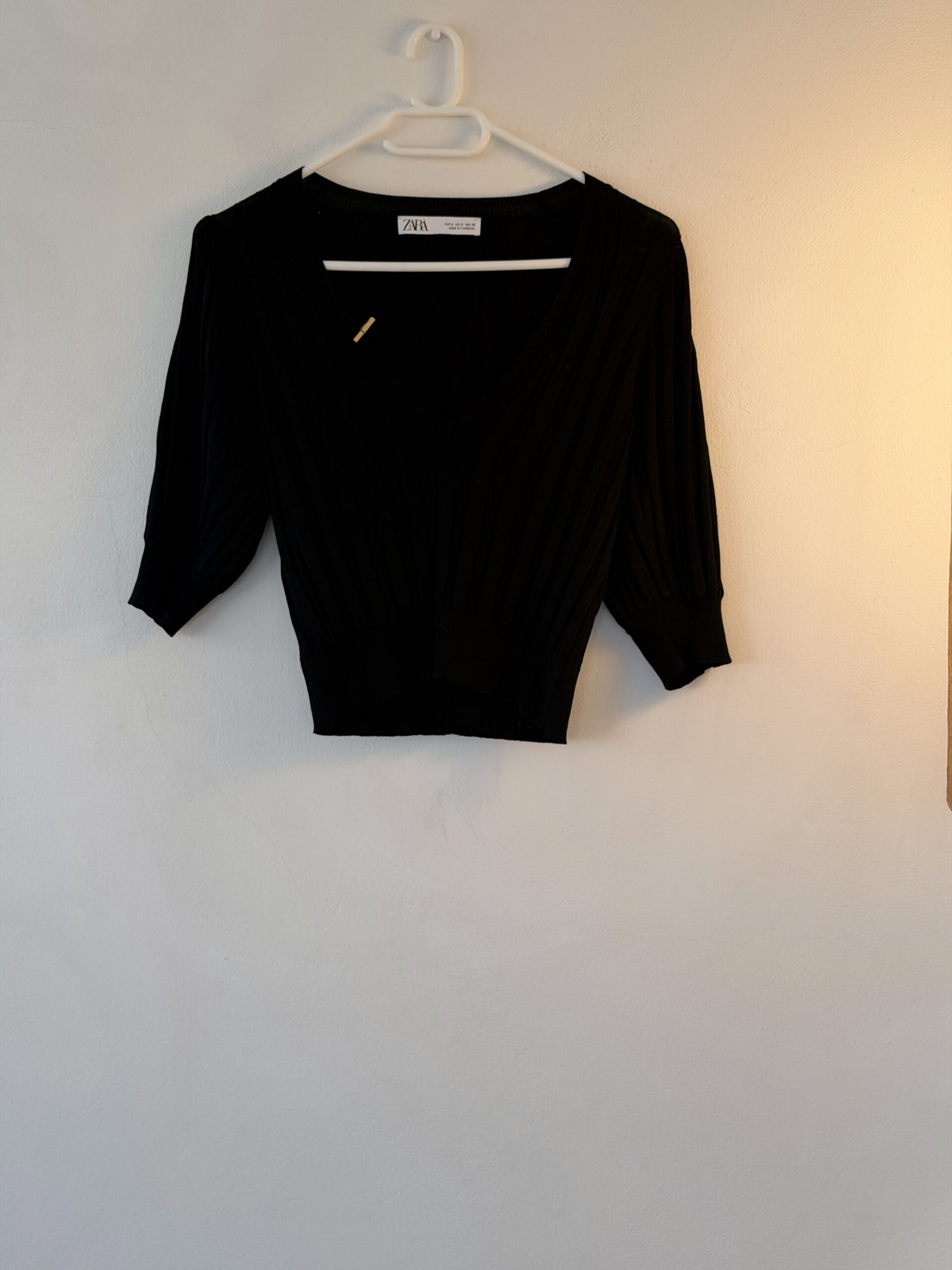 👉 ZARA Ribbed Knit Top – S – Black