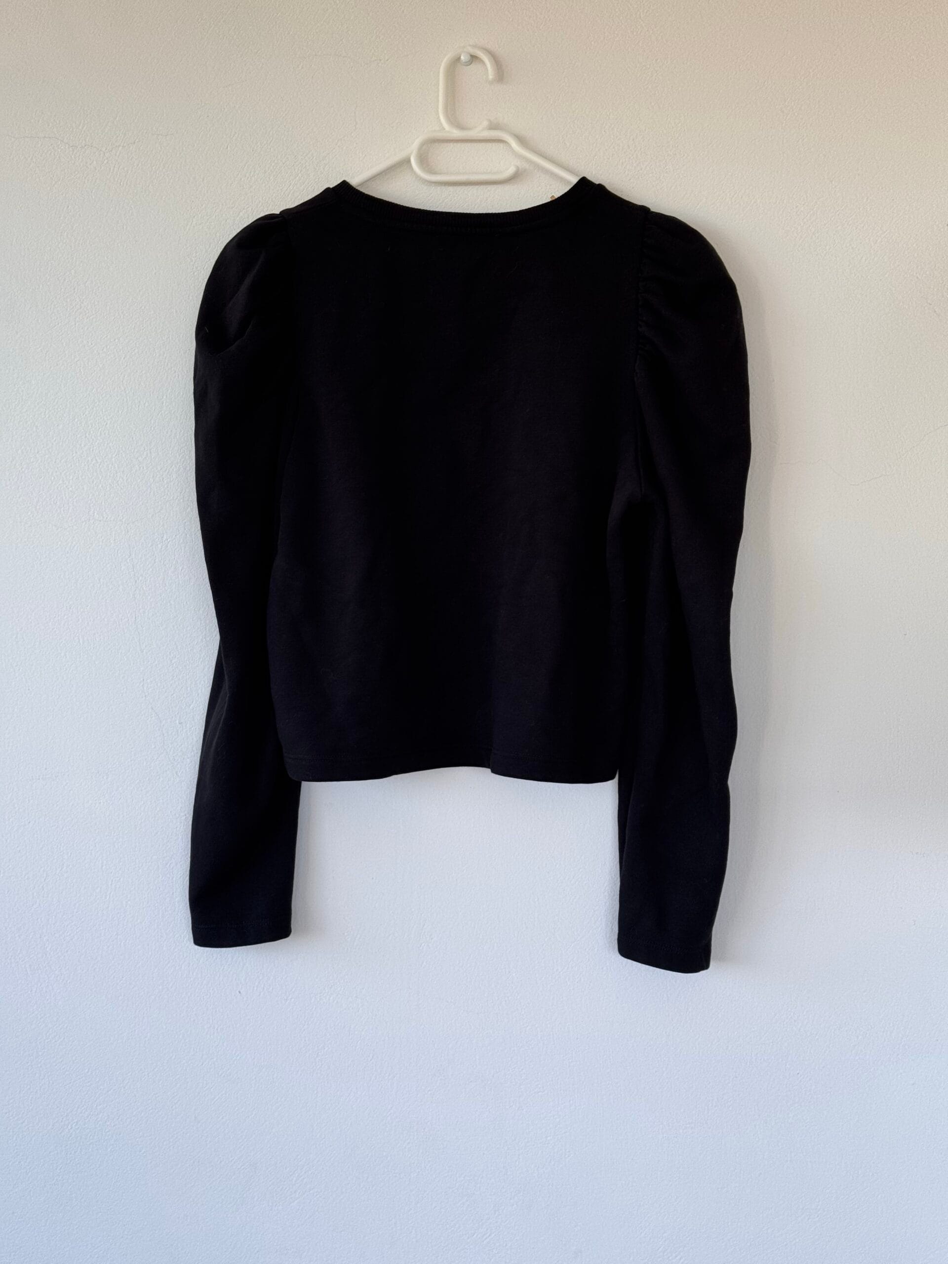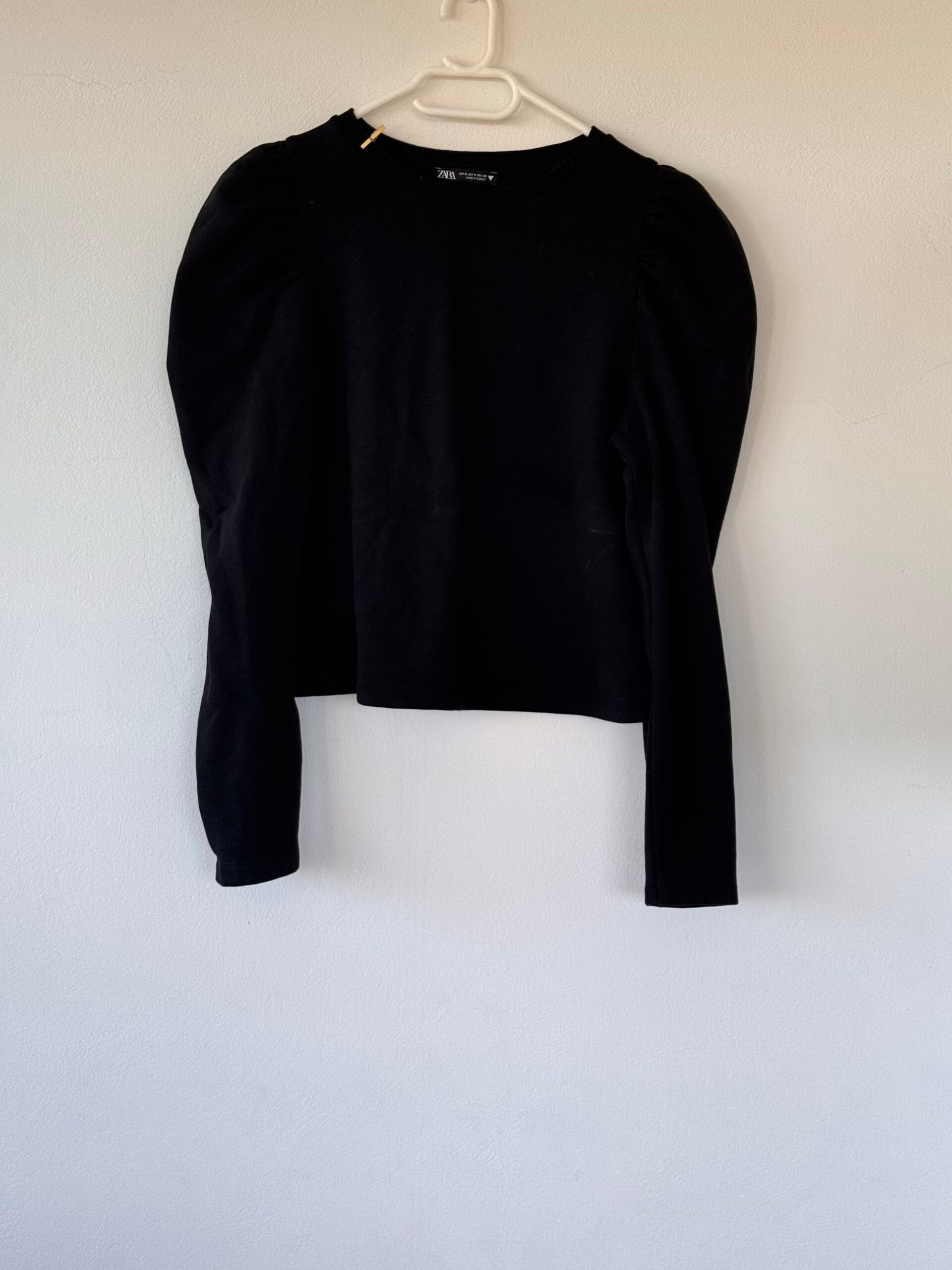 Μαύρο ZARA puff-shoulder top σε μέγεθος S. Minimal, ελαστικό, chic και ιδανικό για κάθε μέρα.