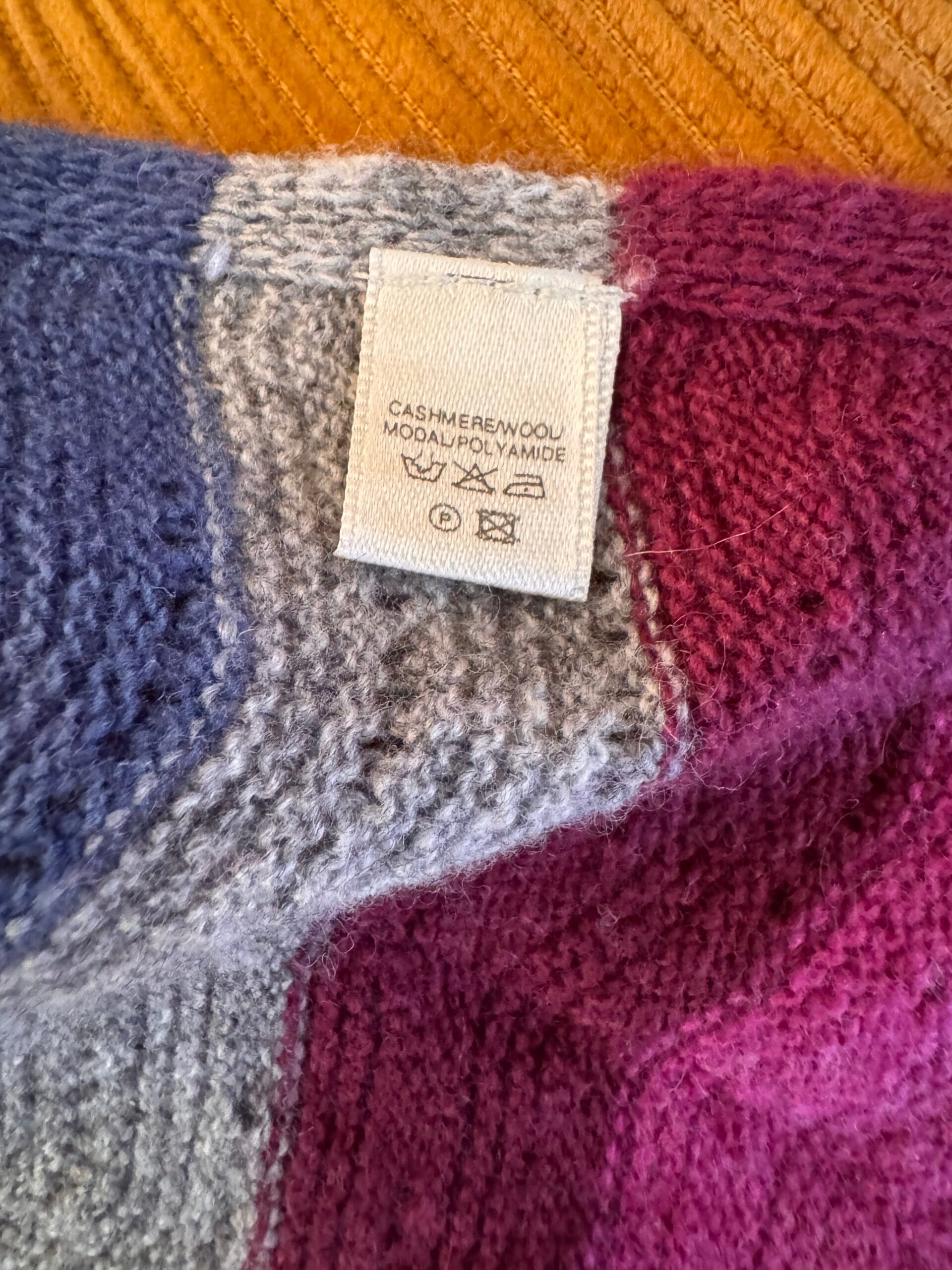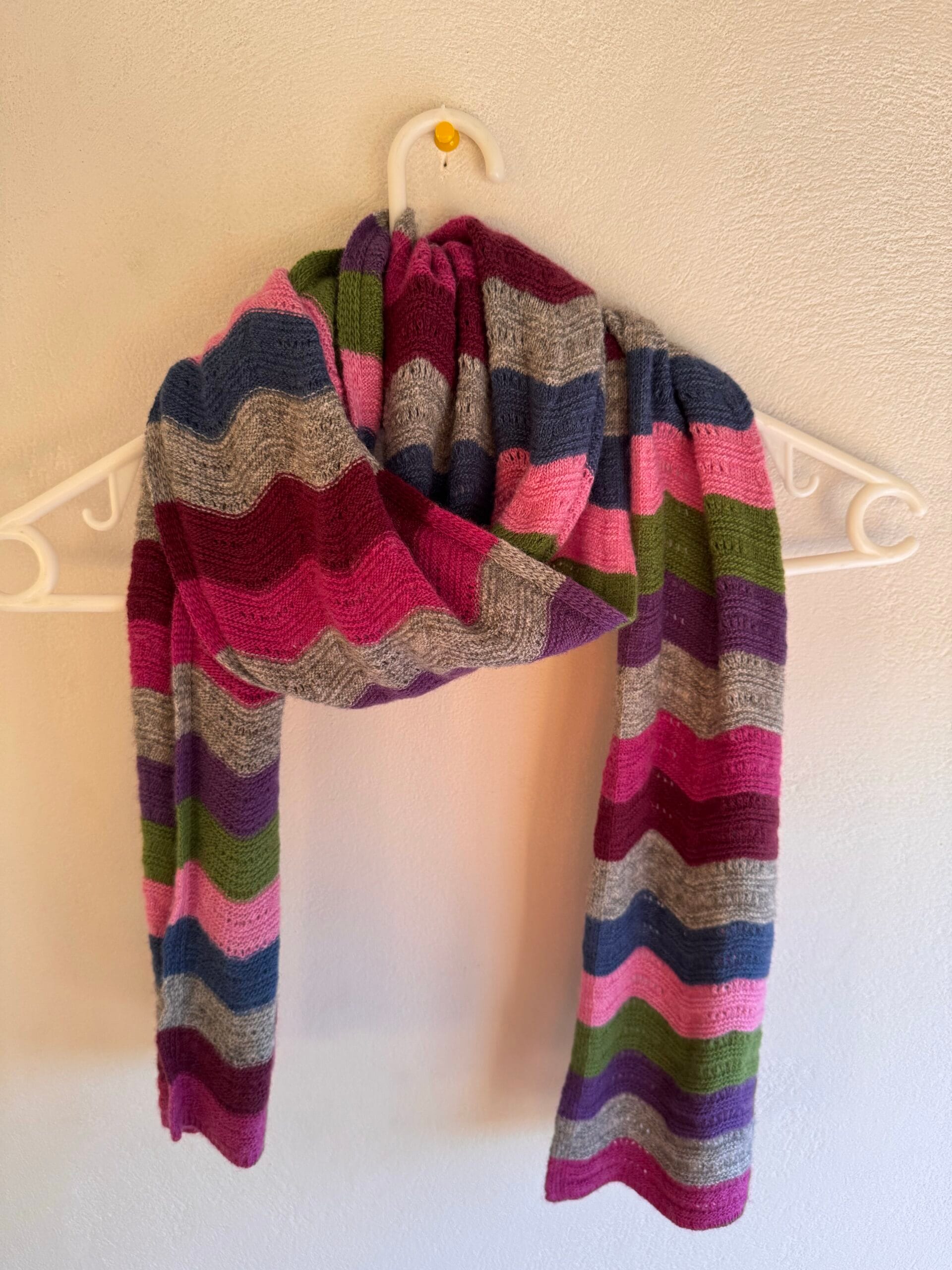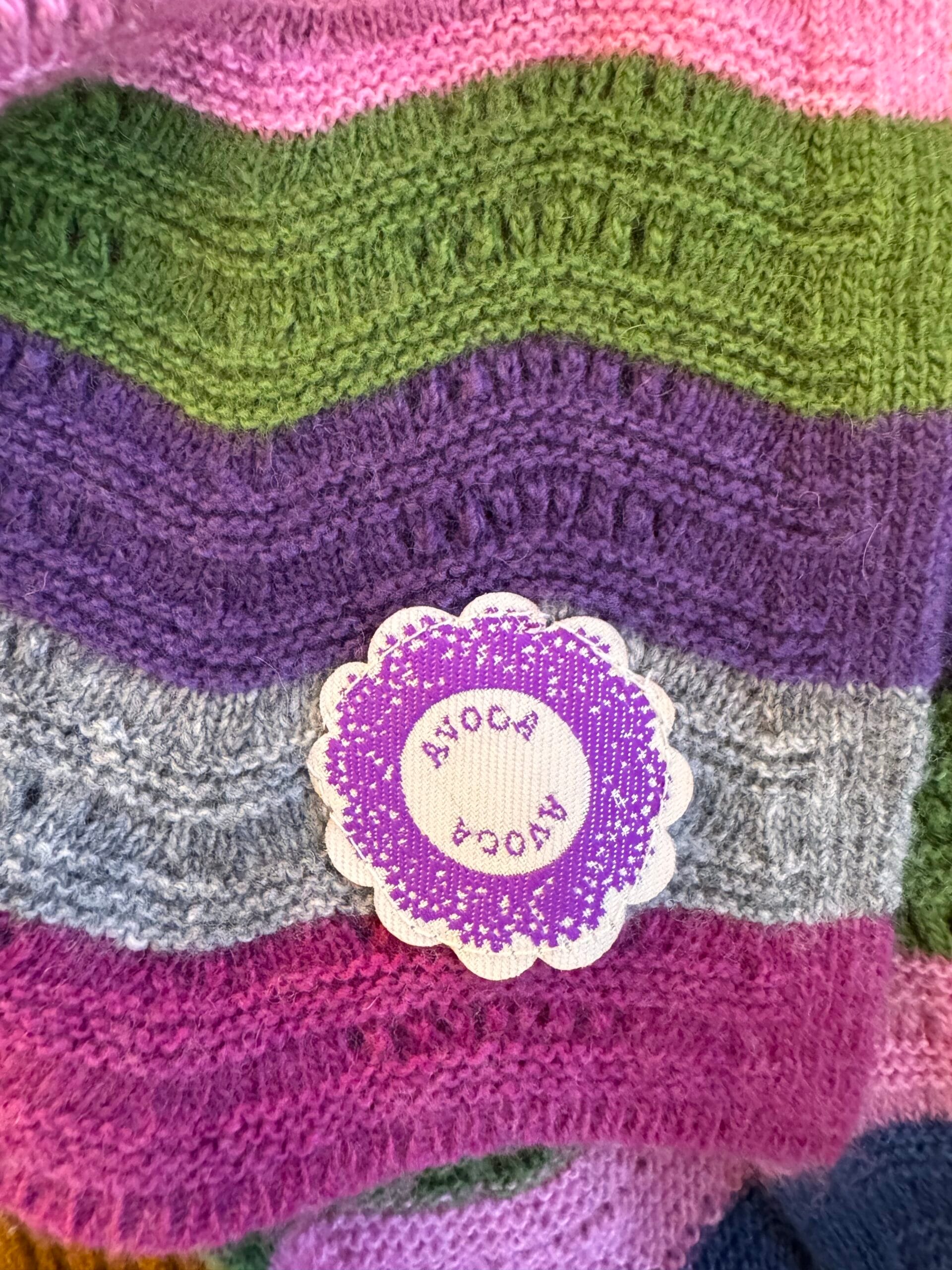 Statement κασκόλ Avoça με zig-zag μοτίβο σε ζωηρά χρώματα. Πολυτελές blend από cashmere, wool & modal, απαλό και ζεστό χωρίς βάρος. Τέλεια κατάσταση — ένα 100% chic winter essential.