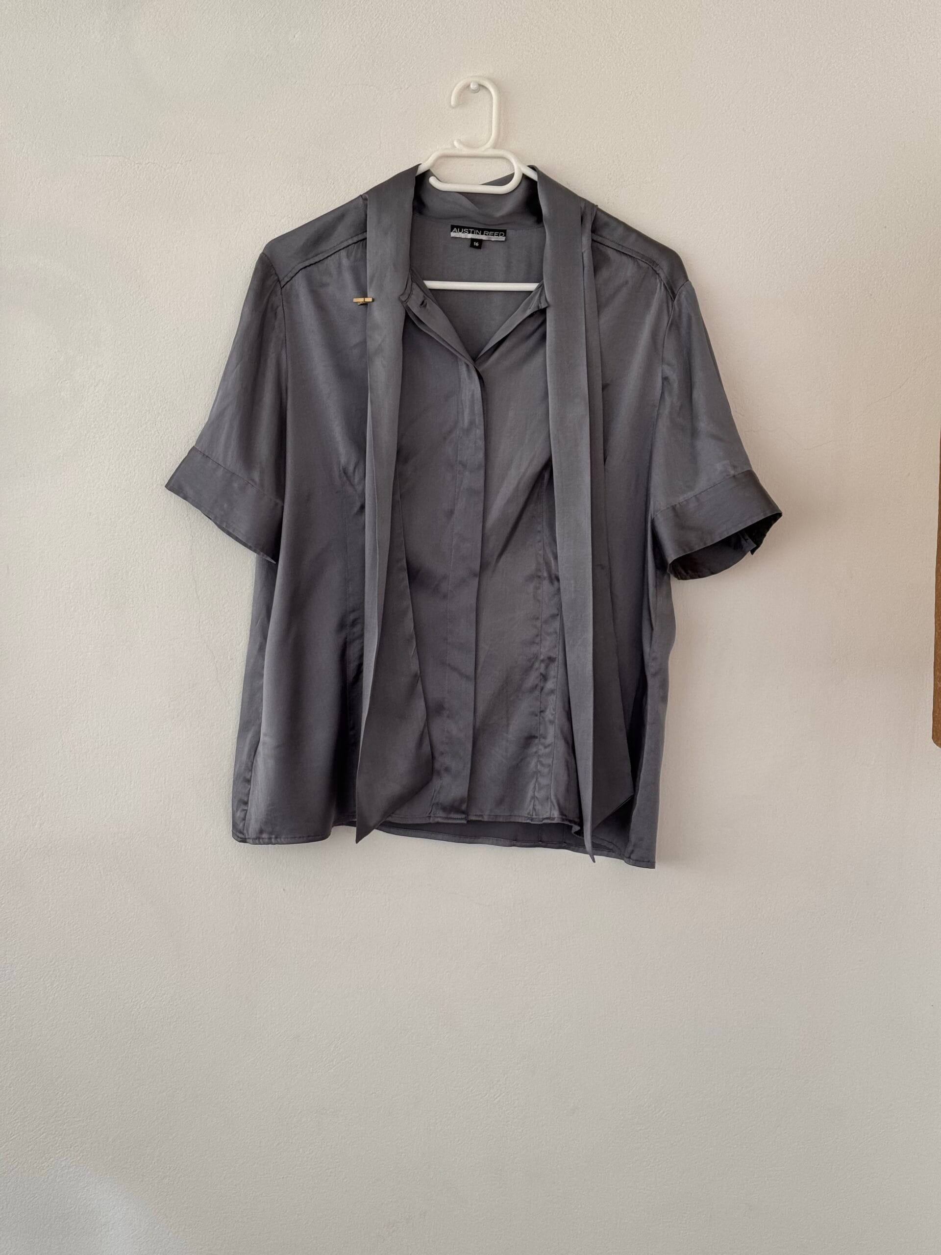 Austin Reed μεταξωτή σατινέ μπλούζα σε graphite grey (96% silk)