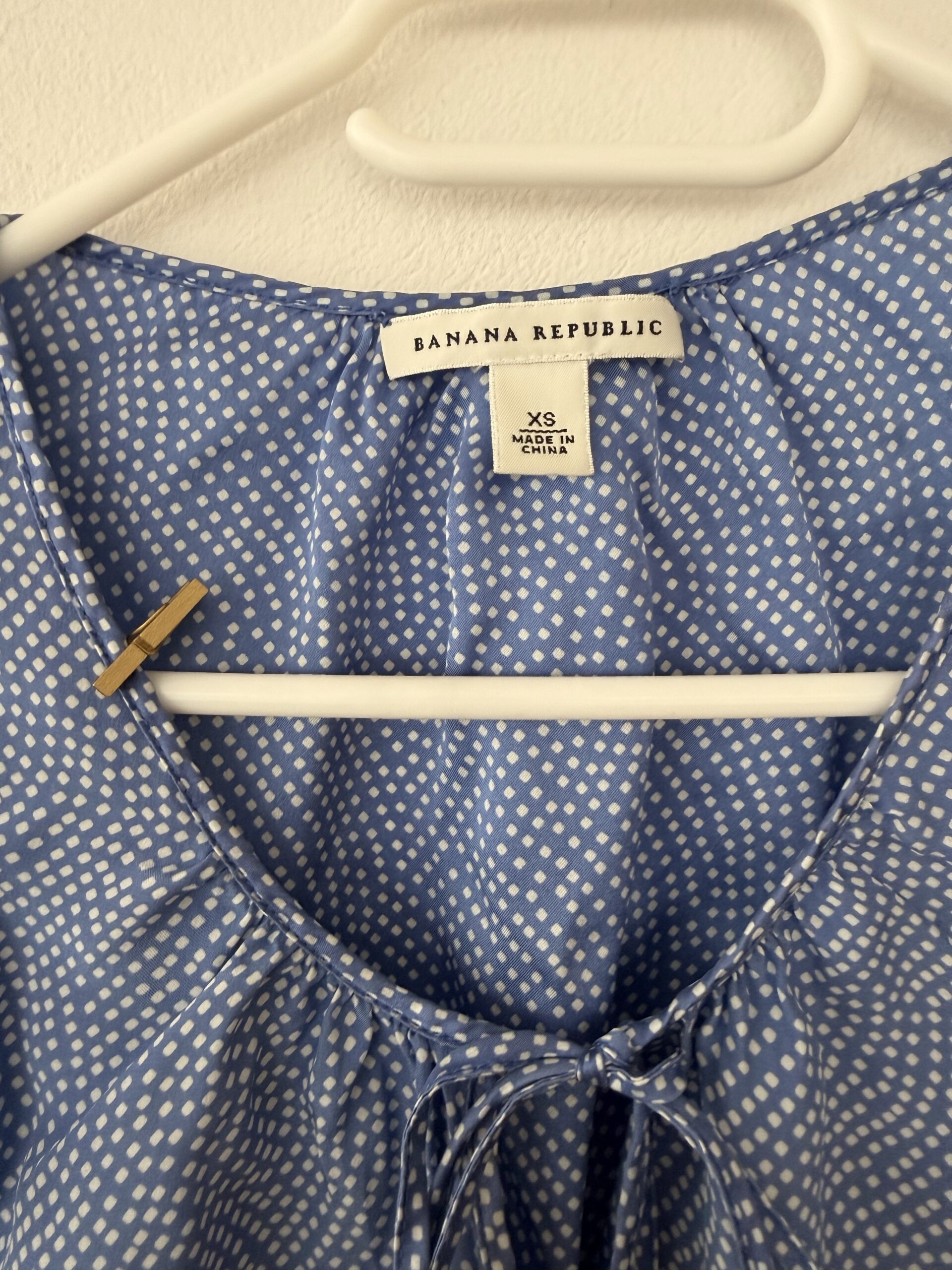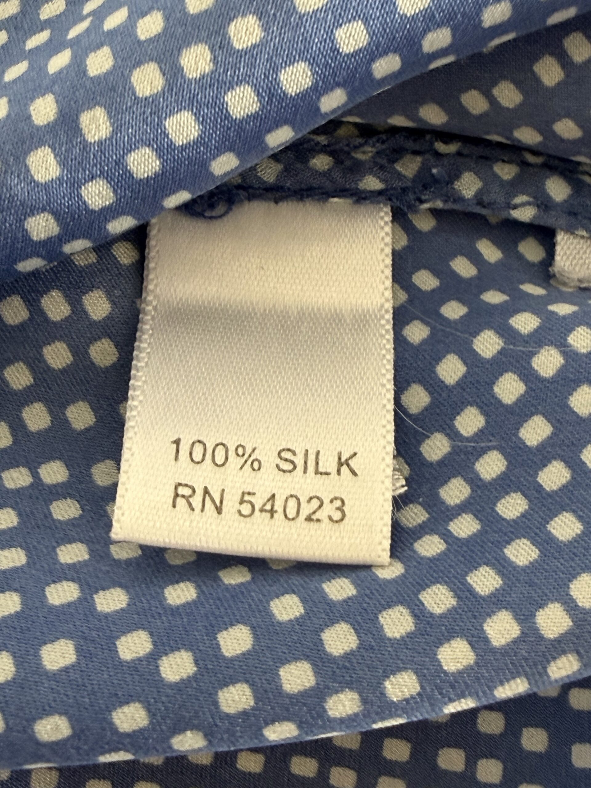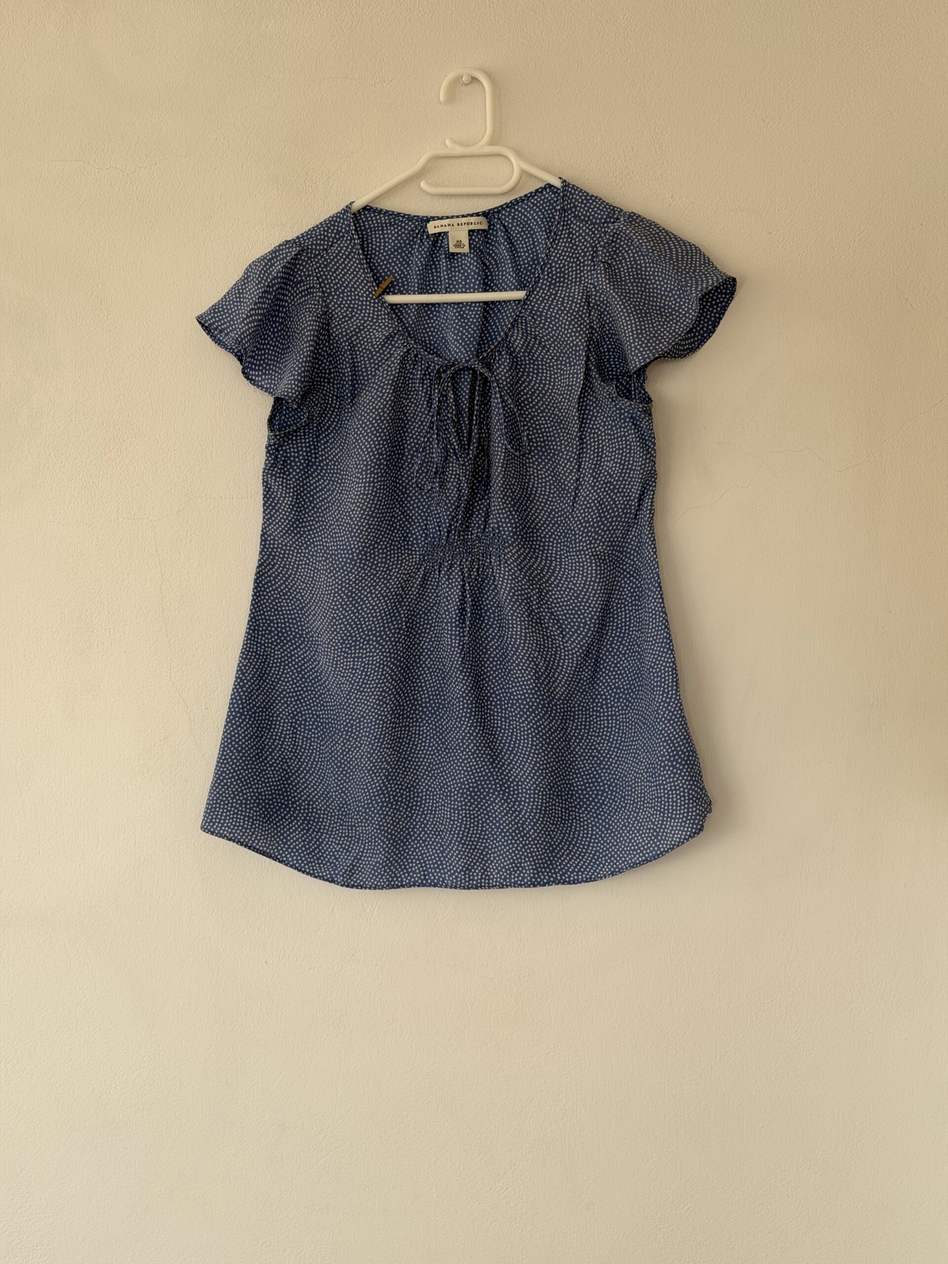 Pre-Loved Banana Republic Silk Blouse – Blue Polka Dot Romantic Top