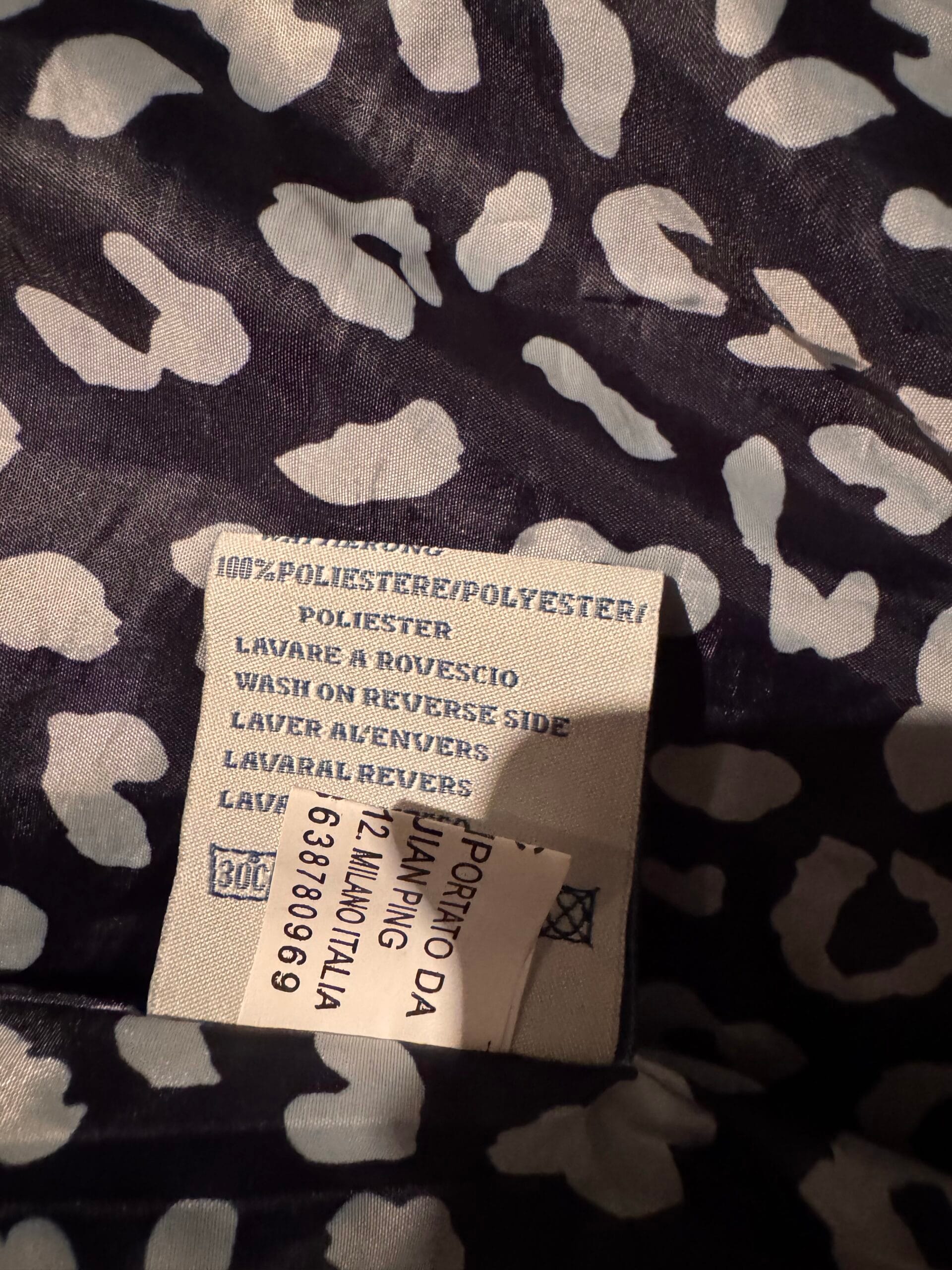 Σε navy απόχρωση, με διακριτικό animal print lining που χαρίζει μοντέρνο twist, διαθέτει ρυθμιζόμενη μέση, μεταλλικά κουμπιά και φερμουάρ.