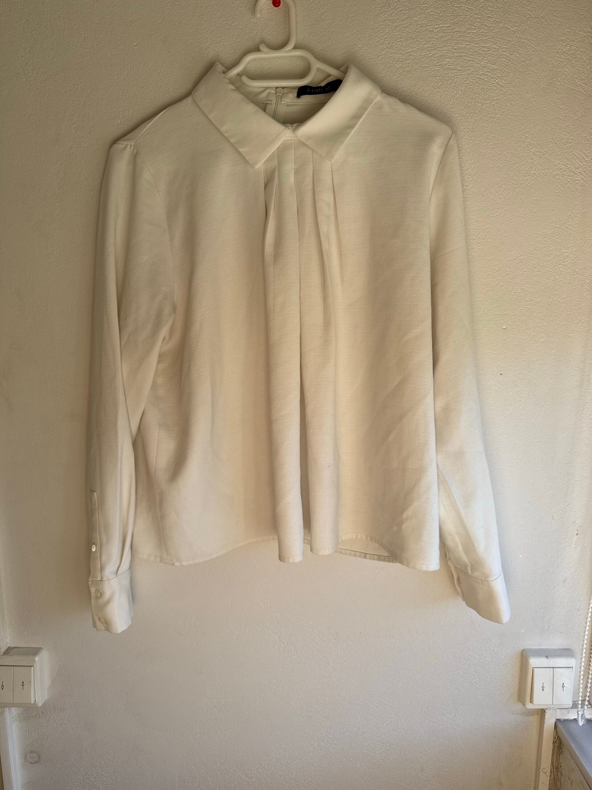 Αέρινο minimal πουκάμισο FRNCH Paris σε απαλό εκρού, με πιέτες στο μπροστινό μέρος και structured γιακά.