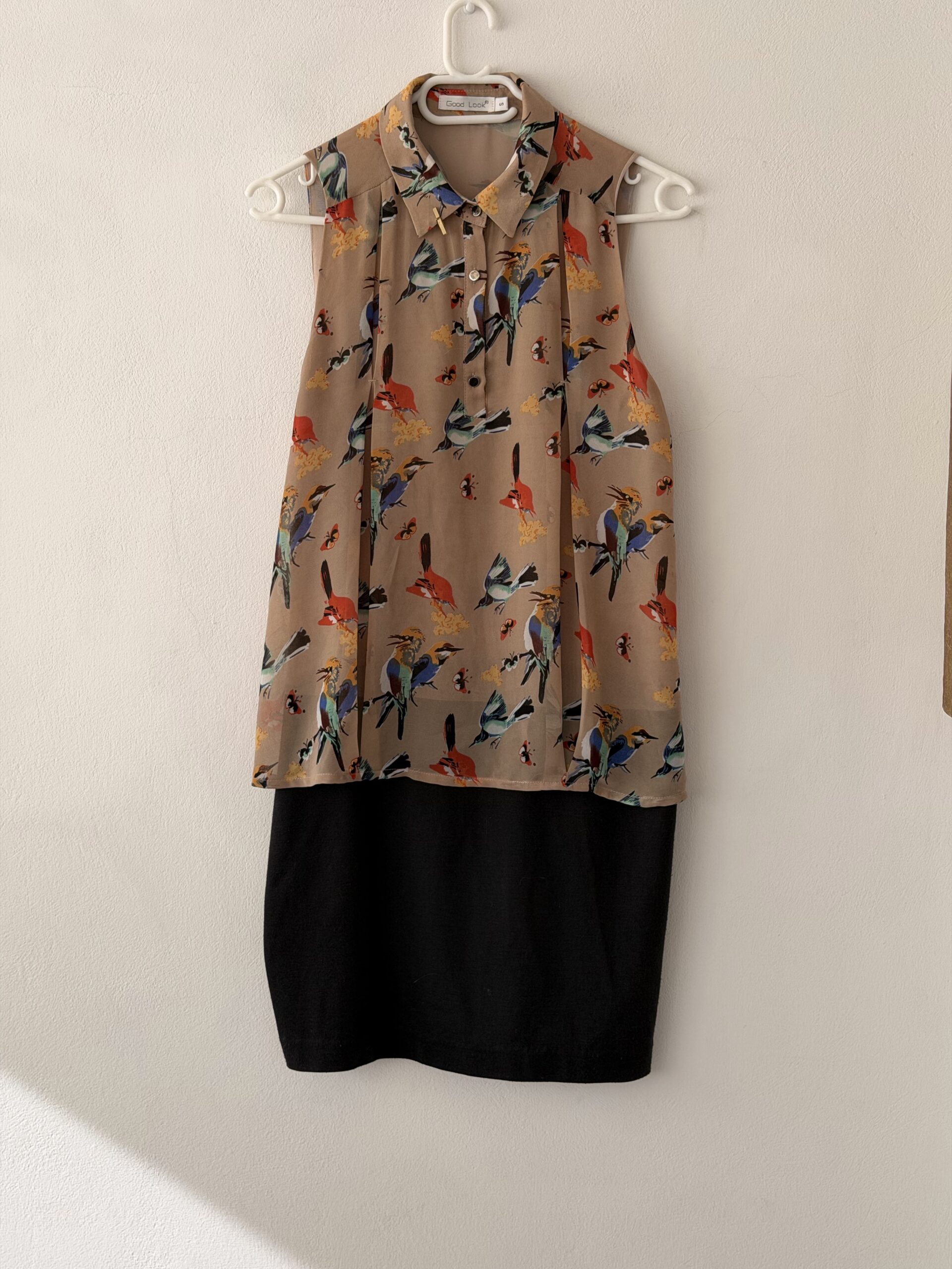 Pre-Loved Good Look Bird Print Midi Dress με Contrast Μαύρη Φούστα
