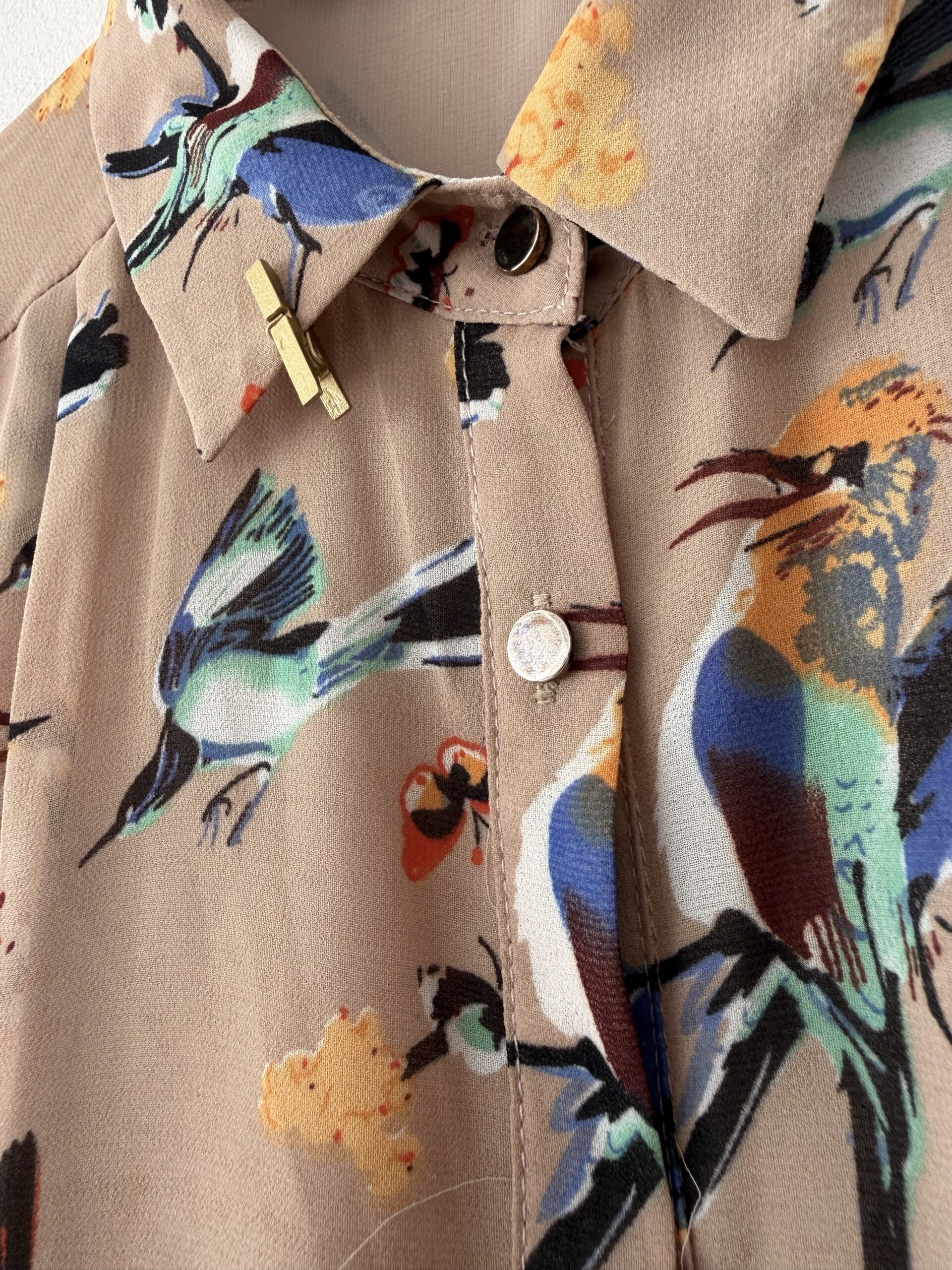Ένα ιδιαίτερο midi φόρεμα που ισορροπεί ανάμεσα στο effortless και το elevated styling. Το bird print σε γήινες αποχρώσεις χαρίζει καλλιτεχνικό χαρακτήρα, ενώ η μαύρη fitted φούστα δημιουργεί ένα κομψό contrast που κολακεύει τη σιλουέτα.