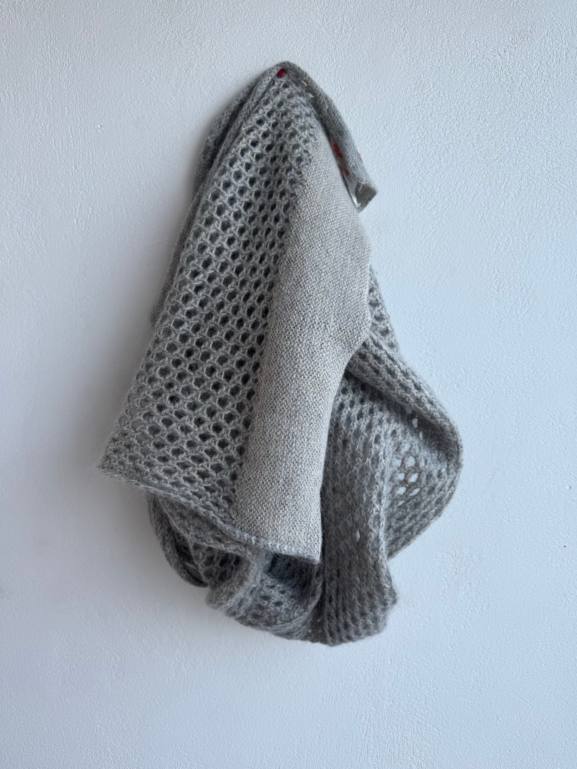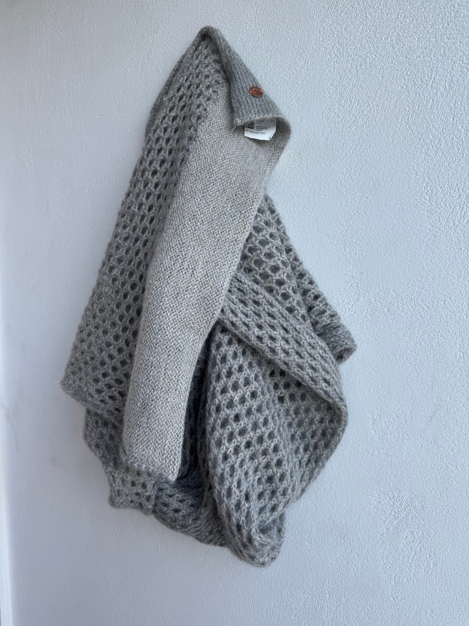 Γκρι πλεκτό κασκόλ με ανάγλυφο μοτίβο – διαχρονικό, ζεστό & super chic.