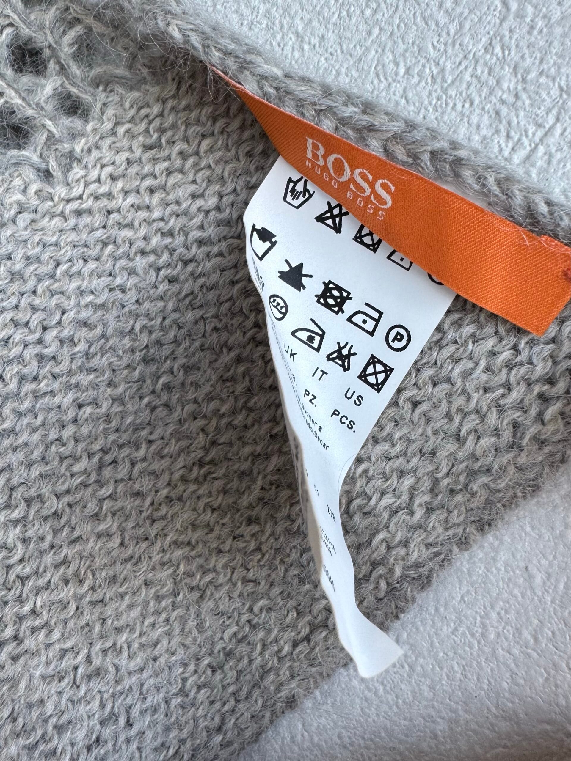 Hugo Boss – Γκρι Πλεκτό Κασκόλ με Ανάγλυφο Μοτίβο