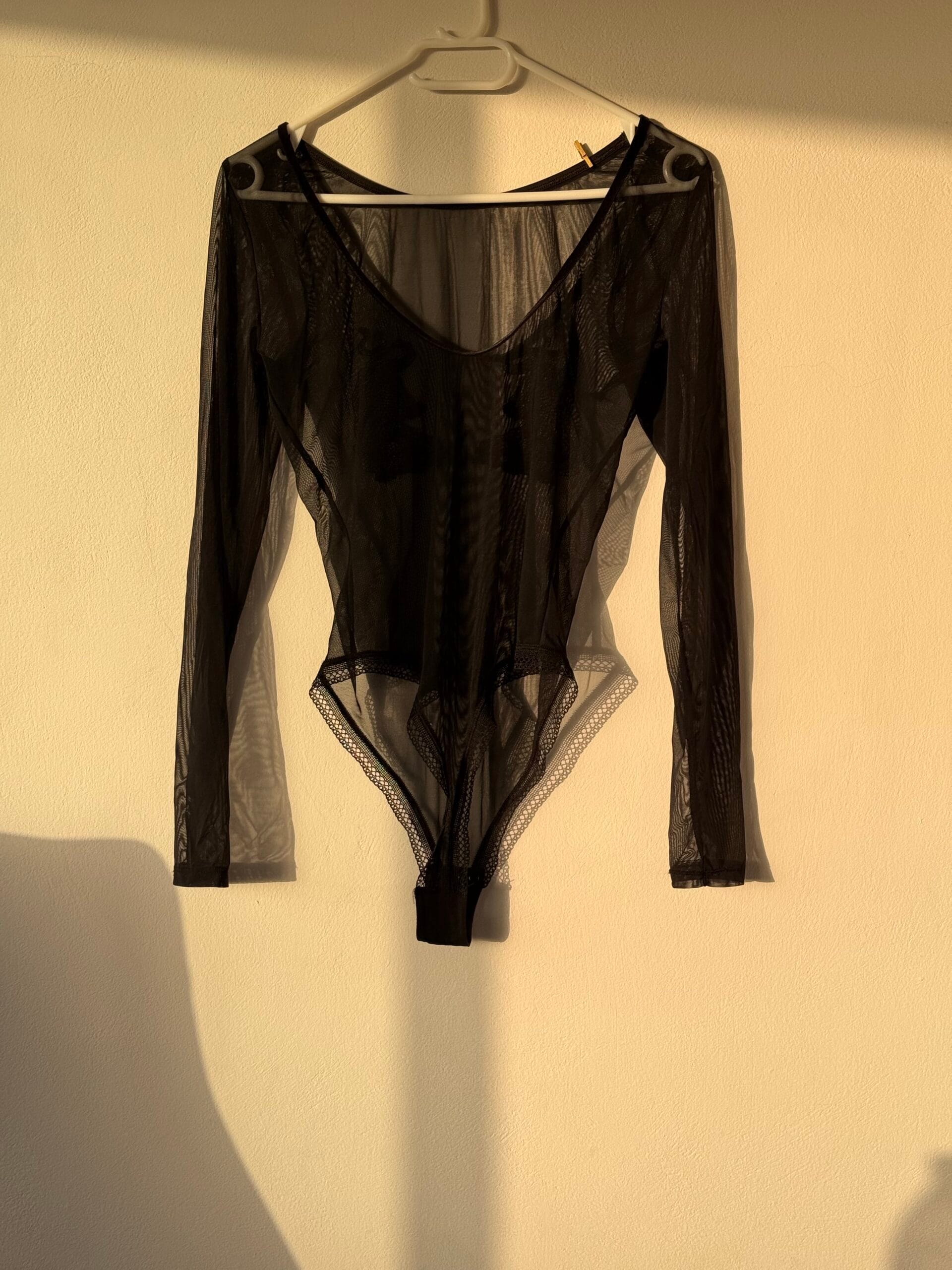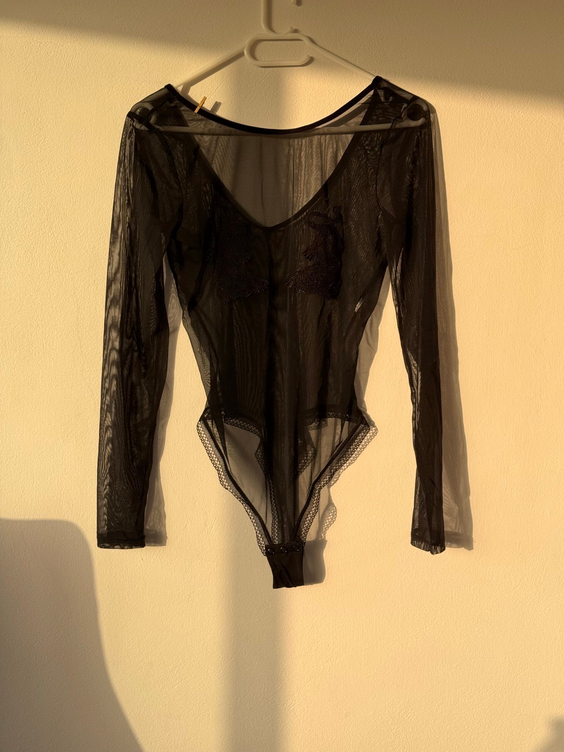 Διάφανο mesh bodysuit με μακρύ μανίκι και κομψό απλικέ. Statement κομμάτι για elegant & sensual looks.