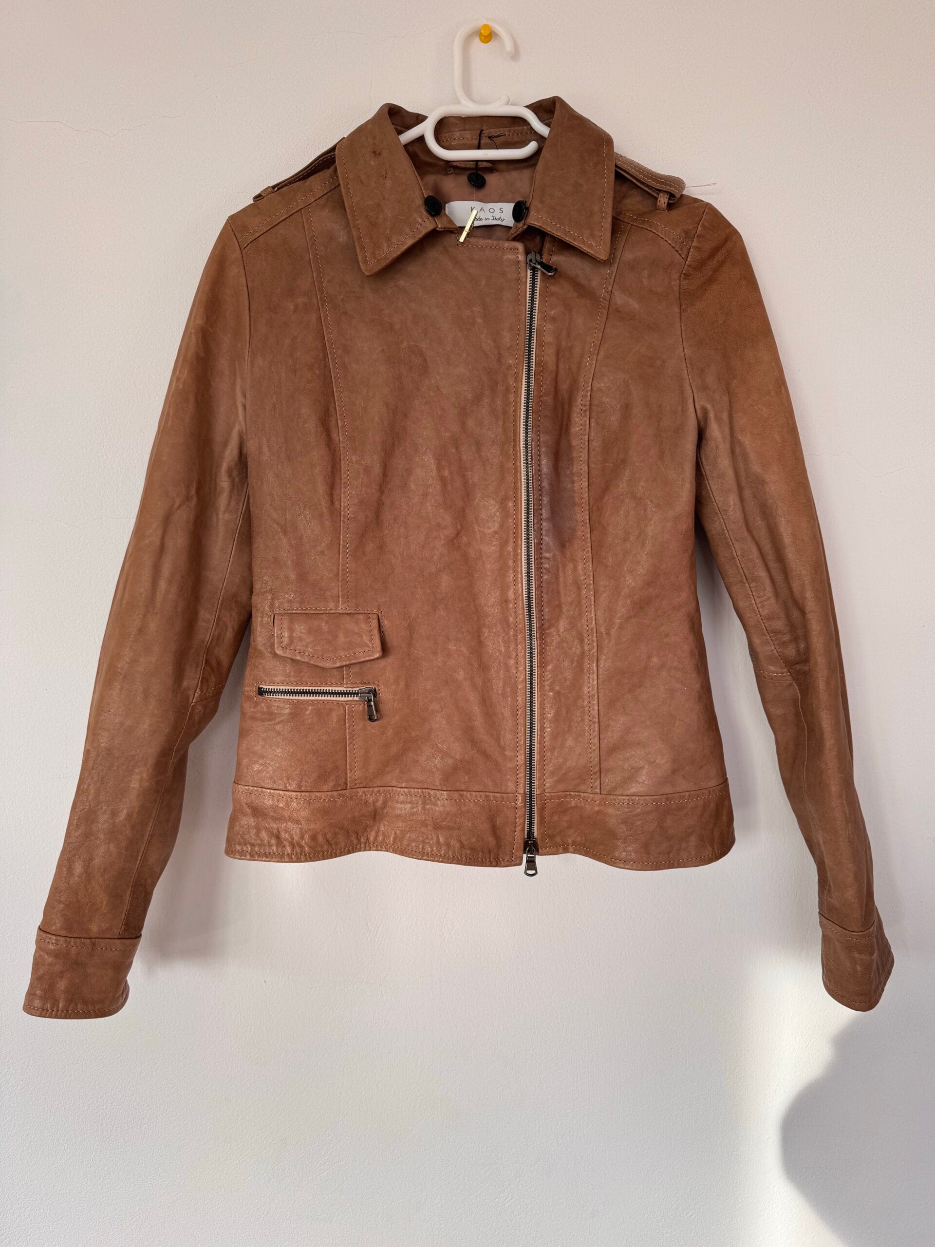 Italian leather jacket KAOS, 100% δέρμα, camel brown. Premium ποιότητα και άριστη κατάσταση.