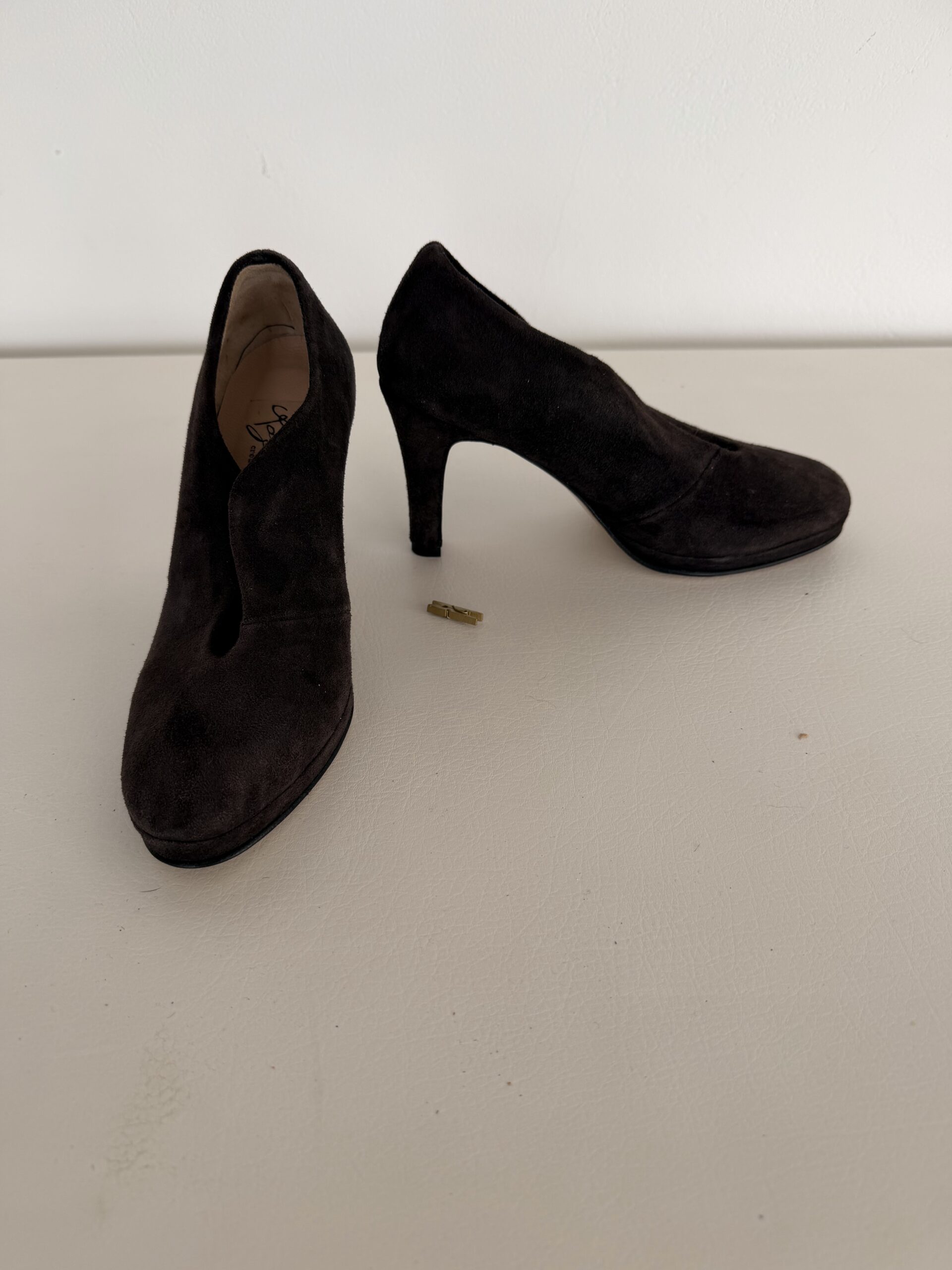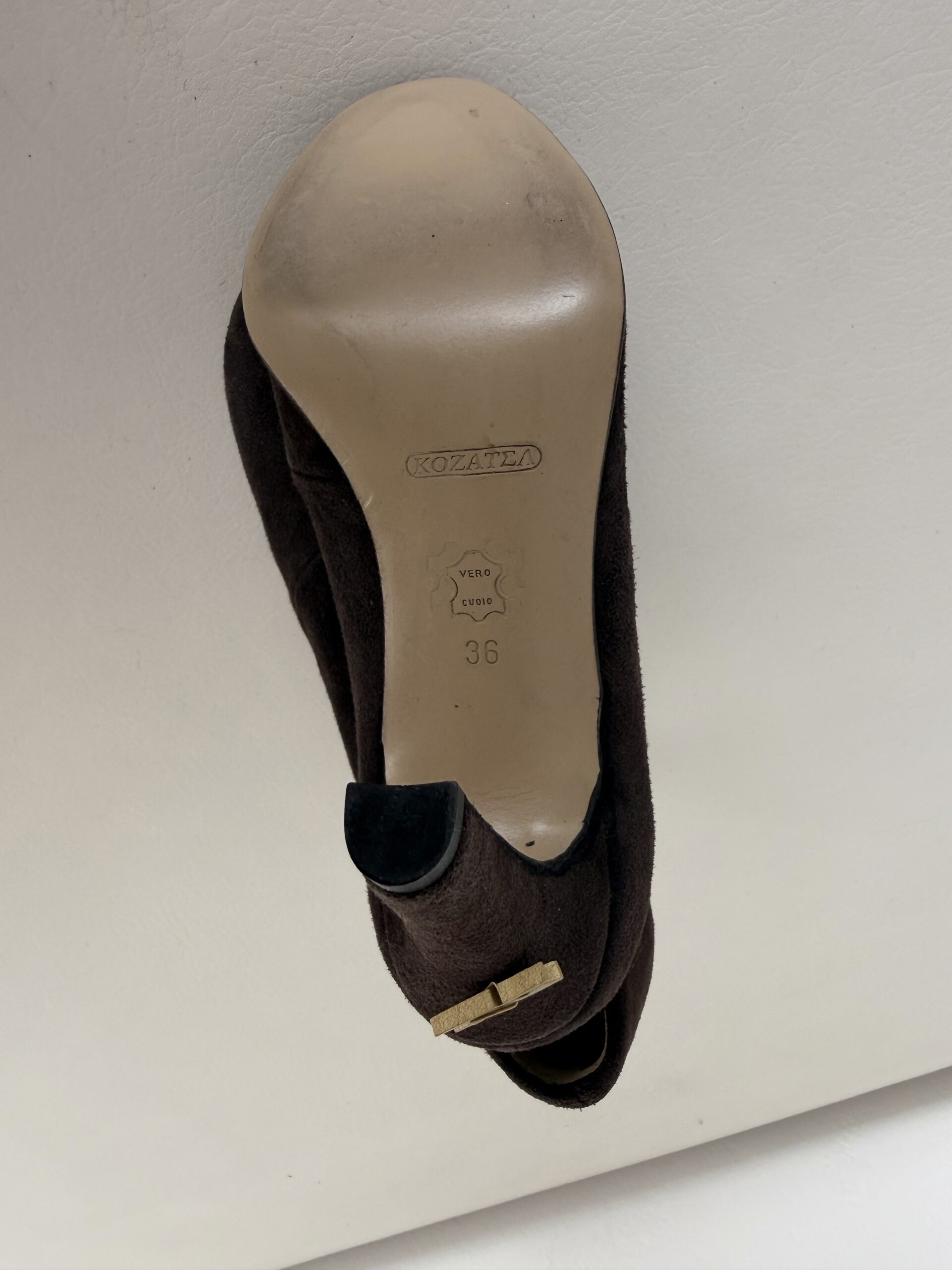 Kozatza Dark Chocolate Suede Heels – Cut-Out Design | Vero Cuoio | Size 36