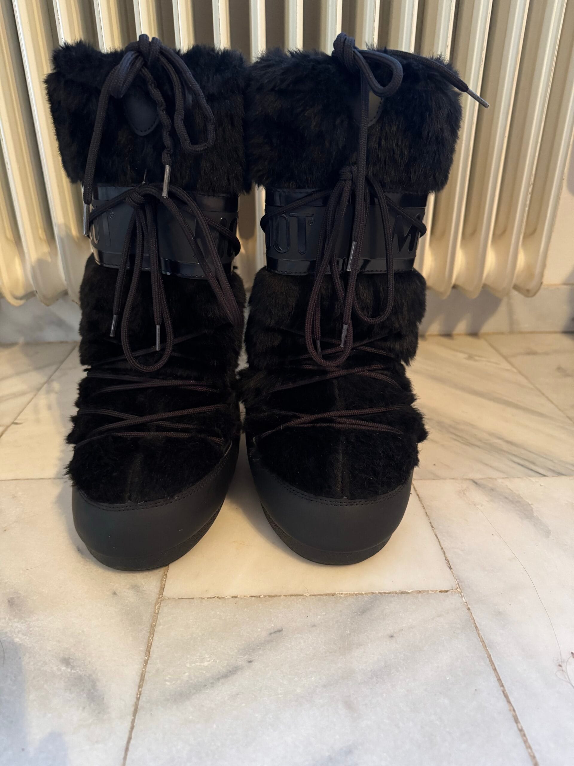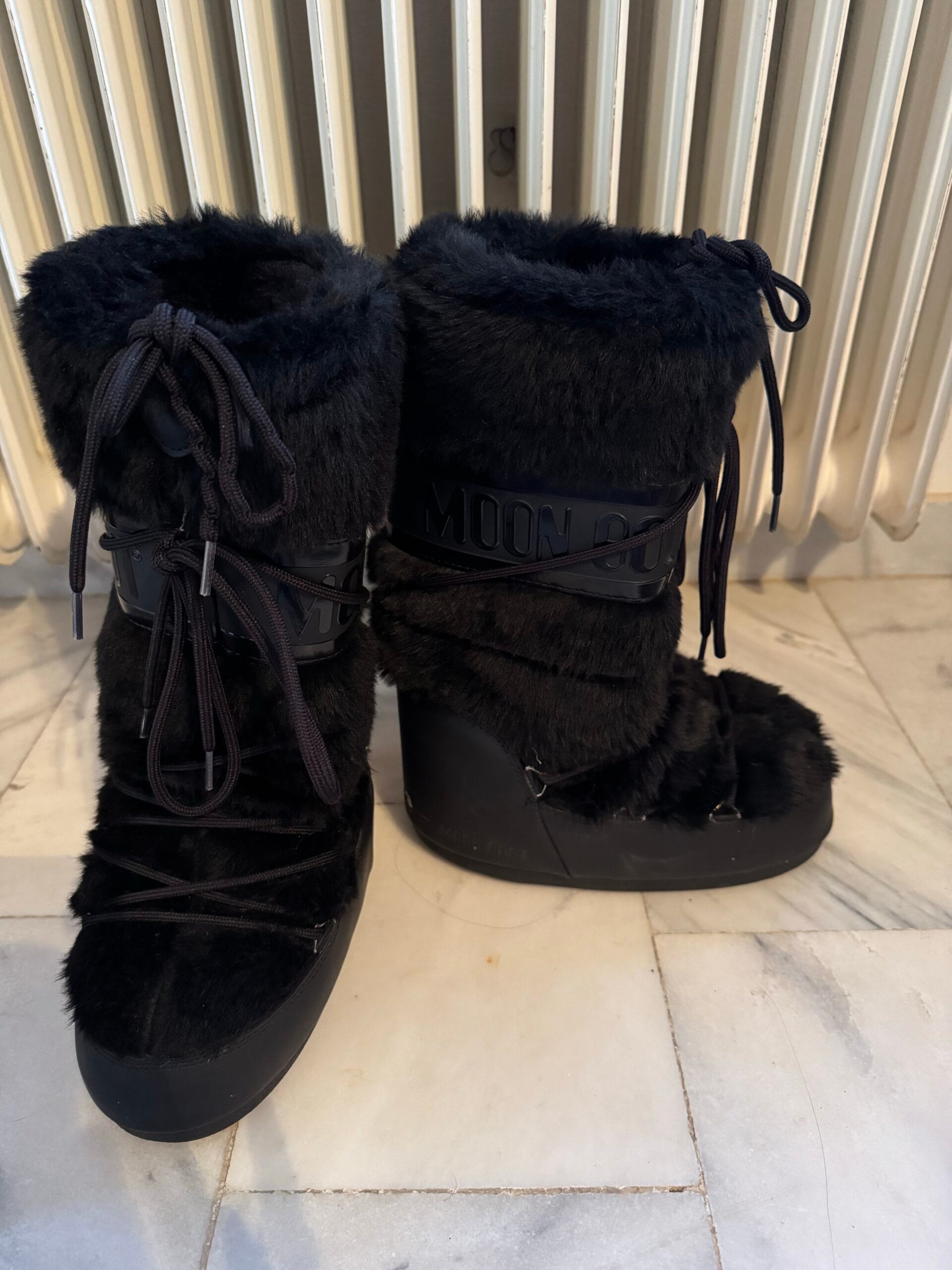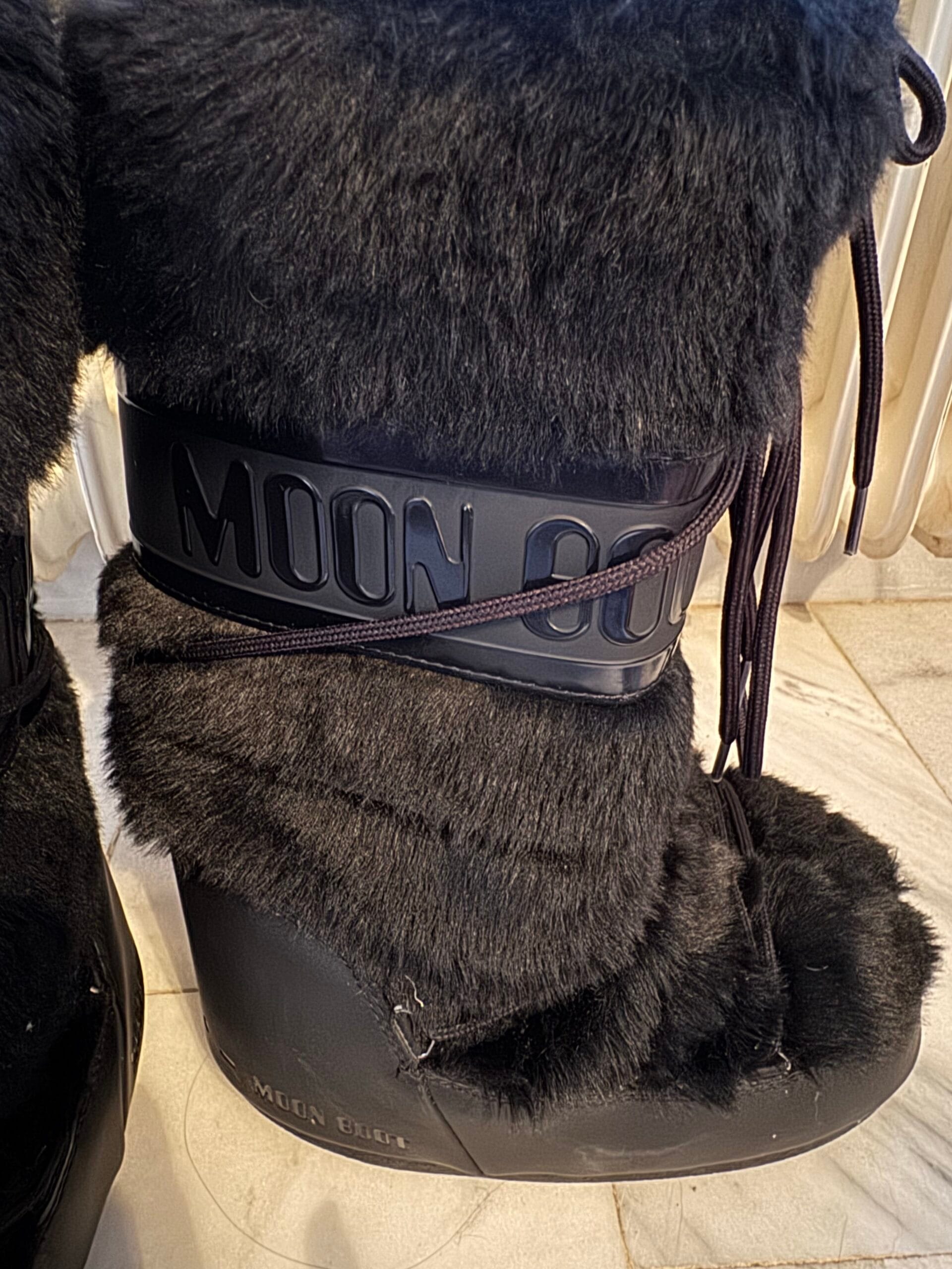 Αυθεντικές Moon Boot Tecnica σε μαύρη furry εκδοχή.