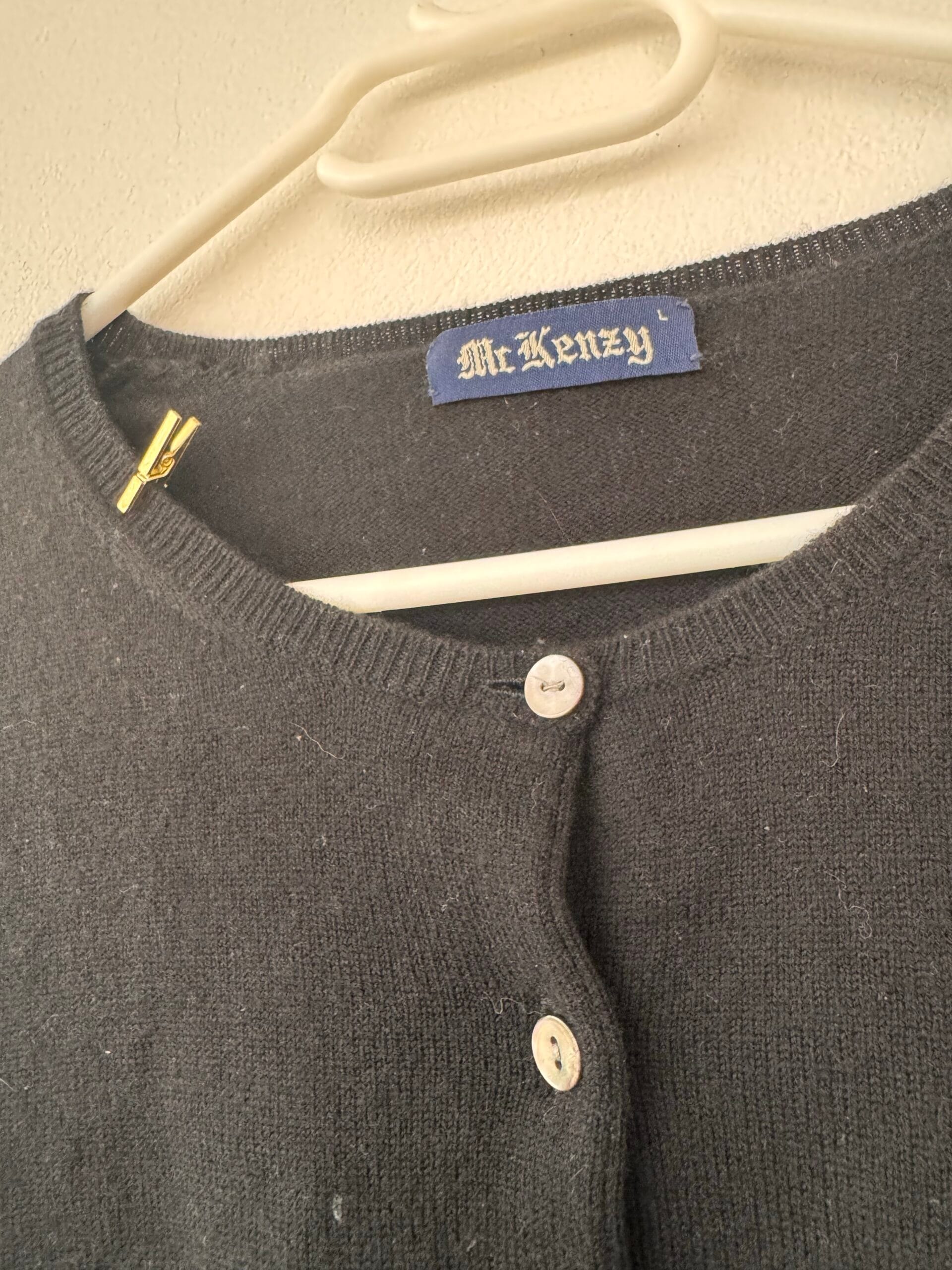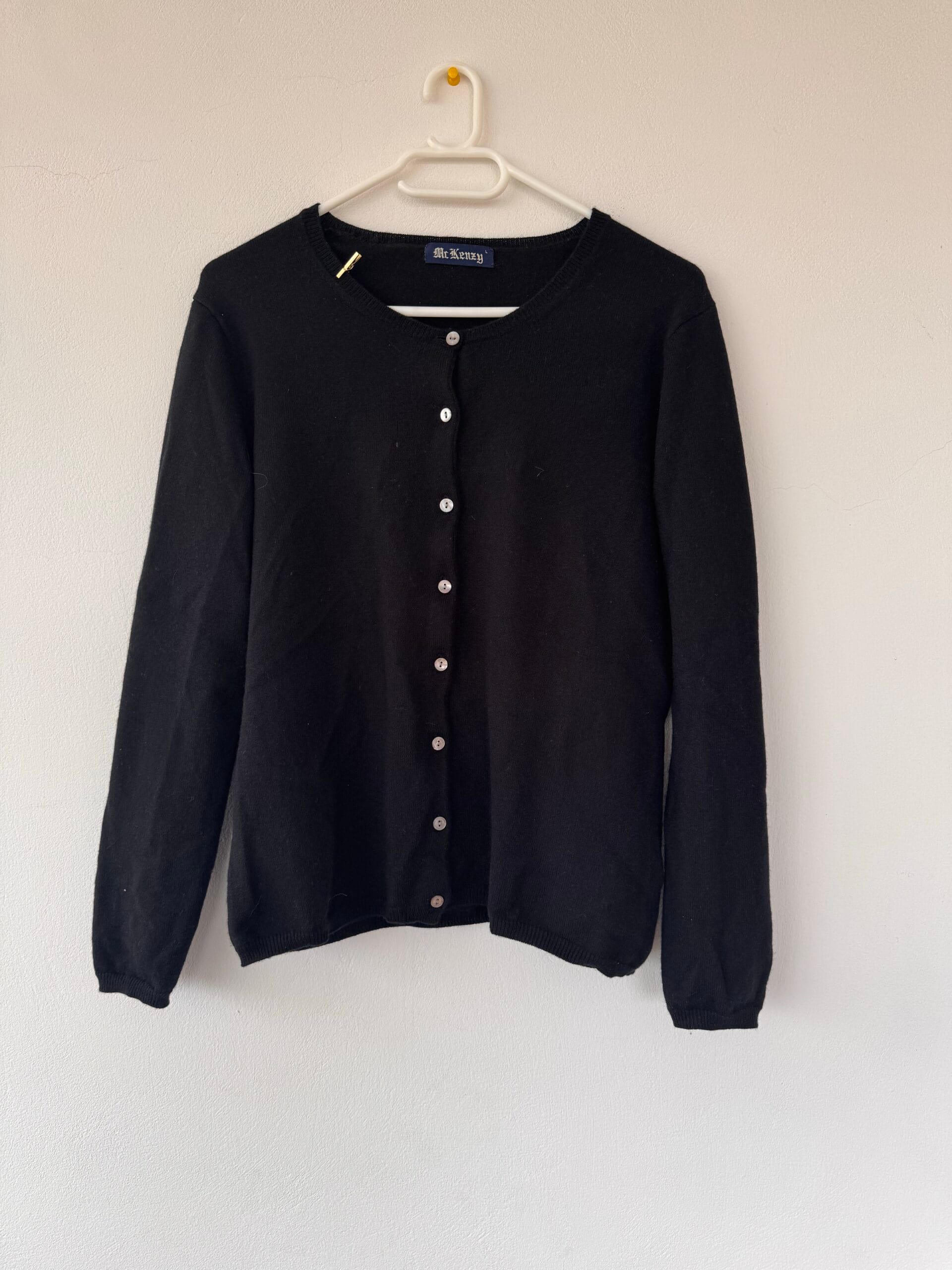 Ανακάλυψε μια απόλυτα διαχρονική μαύρη ζακέτα Mr Kenzy, κατασκευασμένη από 100% φυσικό μαλλί.