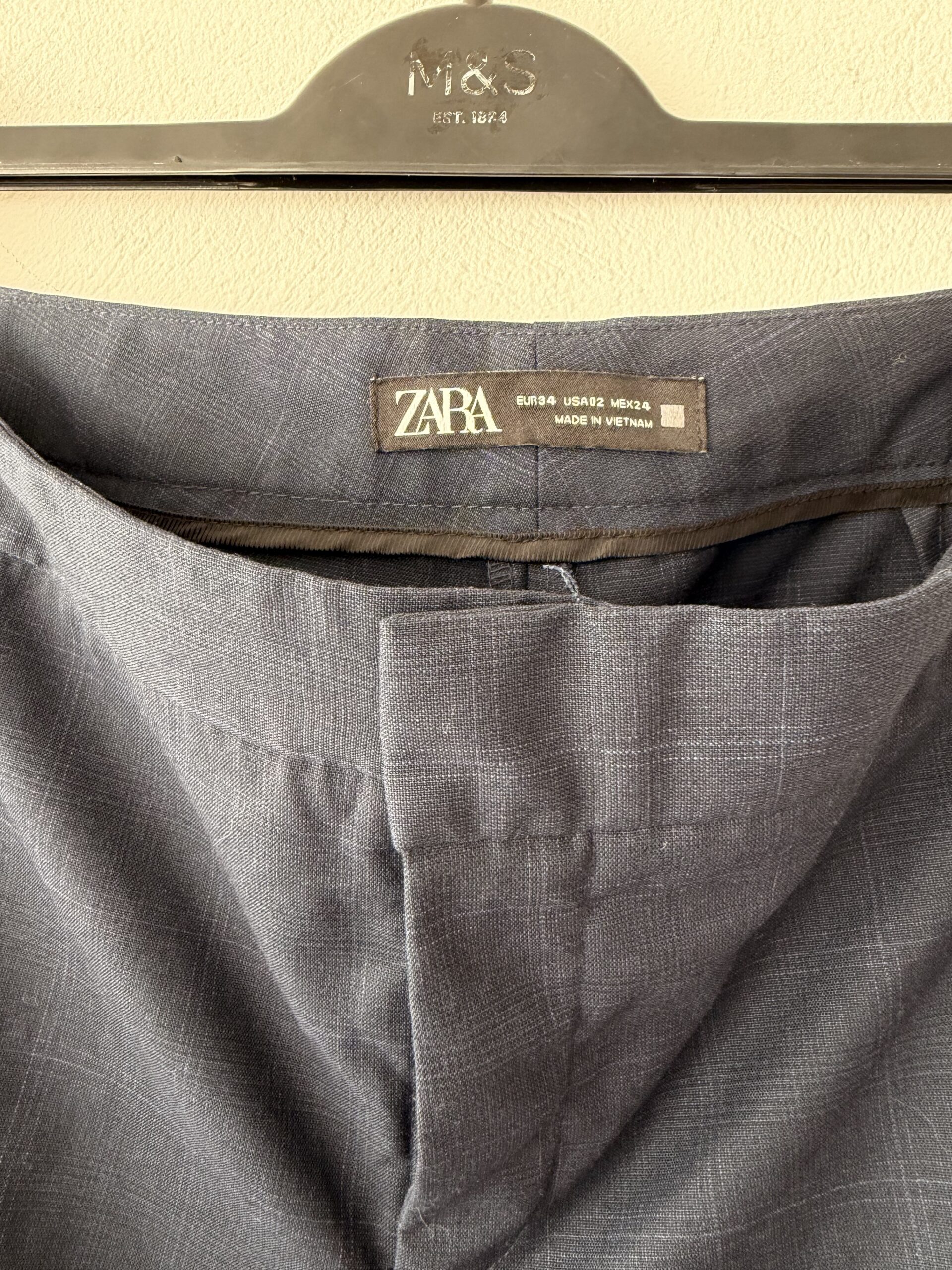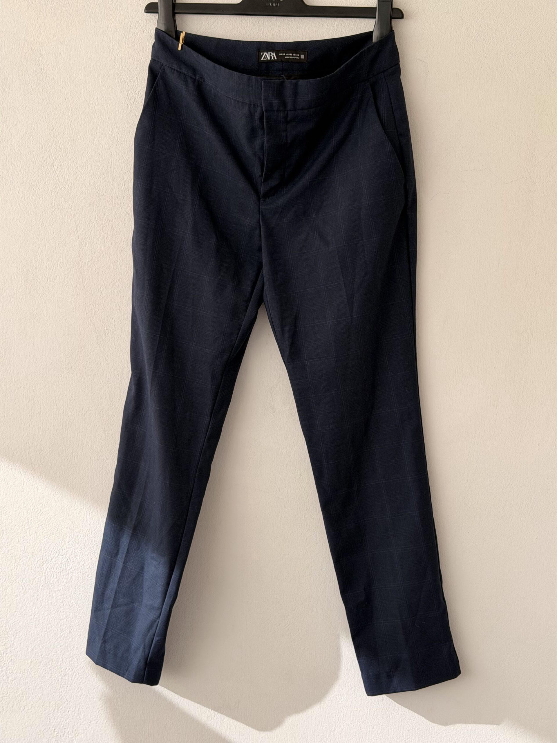 Pre-Loved Navy Tailored Check Trousers by Zara