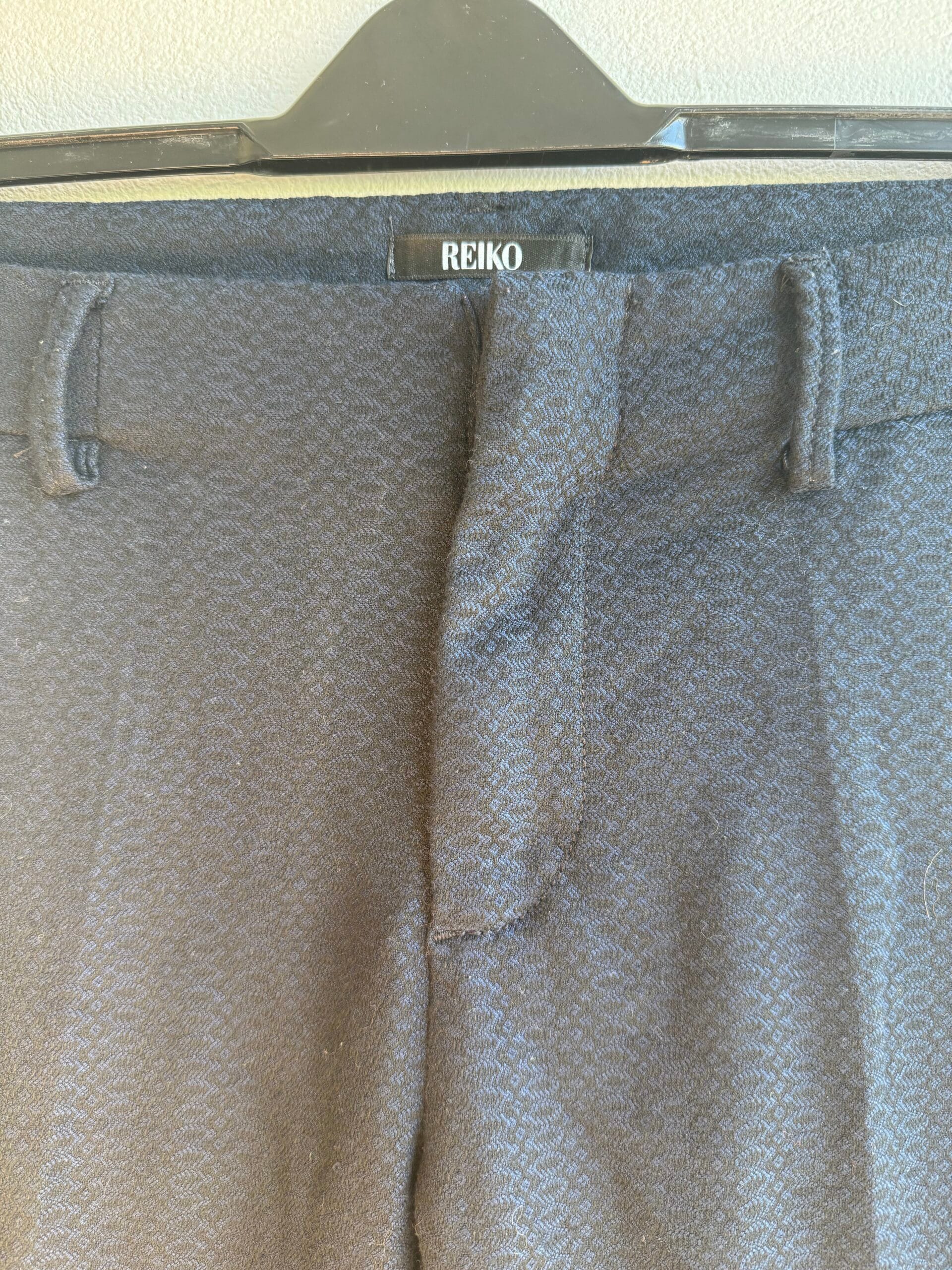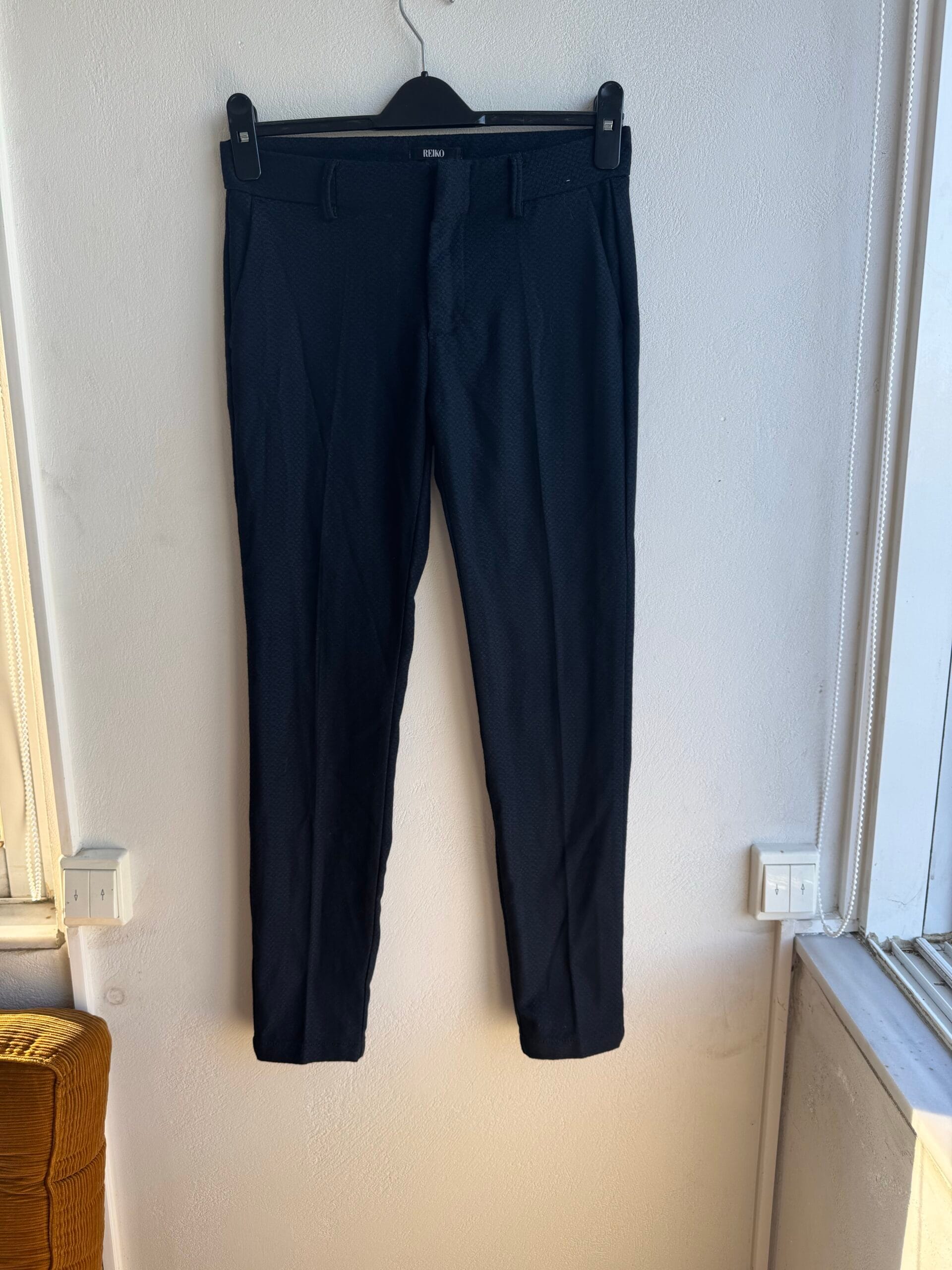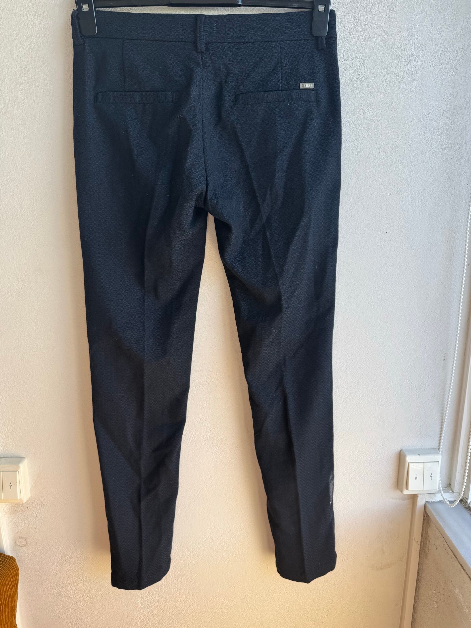 Κλασικό και κομψό στενό παντελόνι από τον οίκο Reiko Paris, με διακριτικό γεωμετρικό μοτίβο στο ύφασμα.