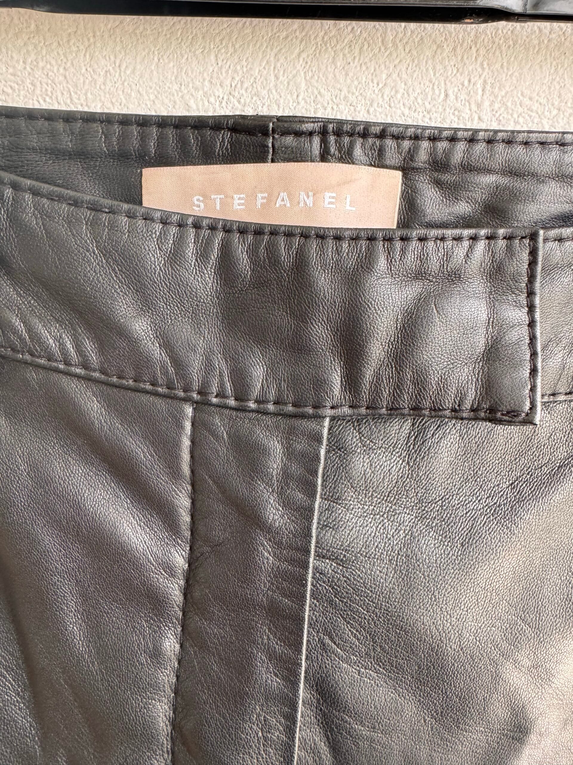 Αυθεντικό Stefanel black leather-front pants από μαλακό φυσικό δέρμα στο μπροστινό μέρος και stretch ύφασμα στο πίσω, για τέλεια εφαρμογή και άνεση.