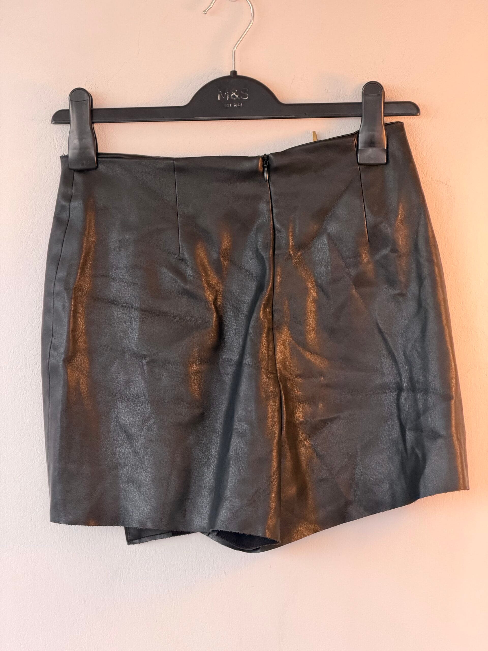 ZARA Μαύρη Faux Leather Mini Φούστα XS με Wrap Σχέδιο & Φερμουάρ