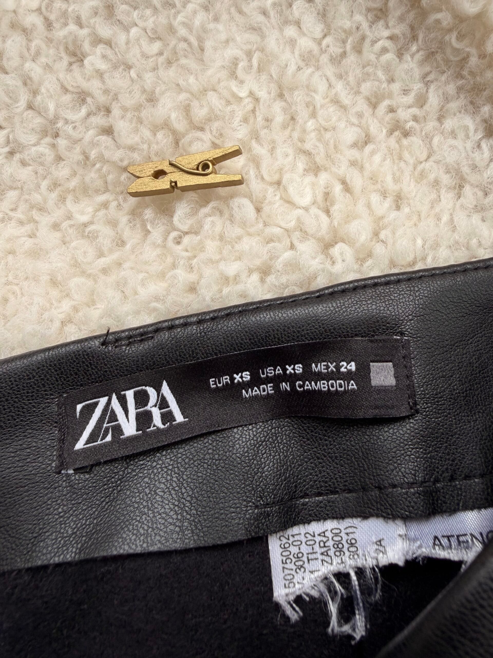 Μαύρη mini faux leather φούστα ZARA σε μέγεθος XS, με wrap εφέ και μεταλλικό φερμουάρ στο πλάι. Statement κομμάτι για day-to-night εμφανίσεις.
