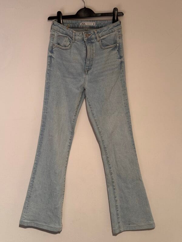 ZARA flare jean σε light wash, high–rise και πολύ κολακευτικό. Μέγεθος S/36, άριστη κατάσταση.