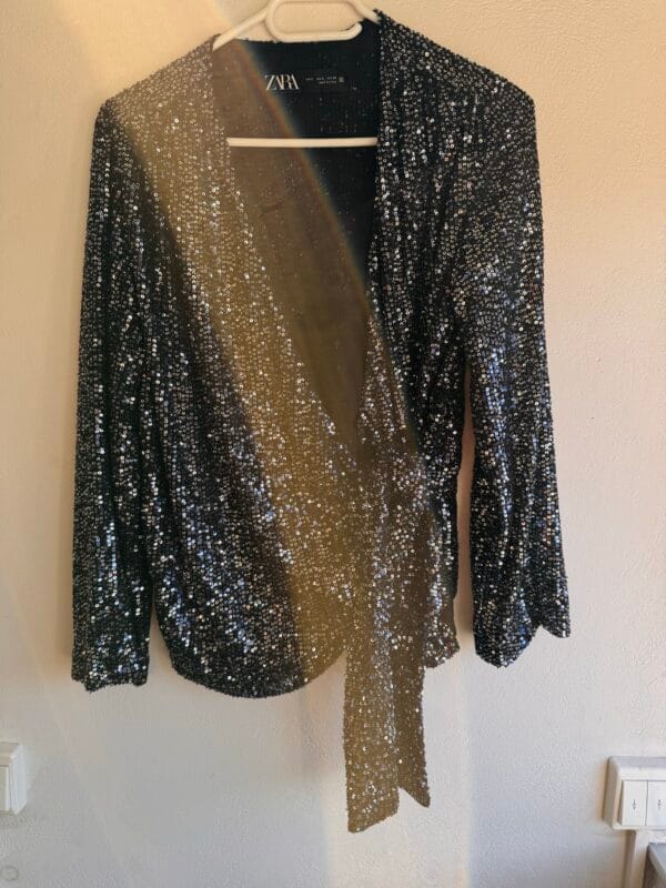 ZARA Sequin Wrap Top – Μαύρο • S