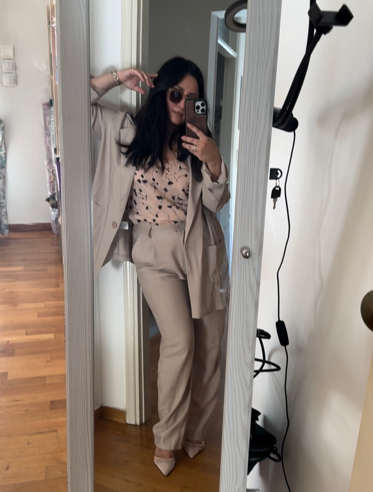 Το lingerie top επιστρέφει πιο δυναμικά από ποτέ και βρίσκει τον απόλυτο σύμμαχο στο μπεζ κοστούμι. Ένας συνδυασμός που ισορροπεί ανάμεσα στην αυστηρή κομψότητα και τη θηλυκή αισθησιακή πλευρά, ιδανικός για office looks αλλά και βραδινές εξόδους. ✨